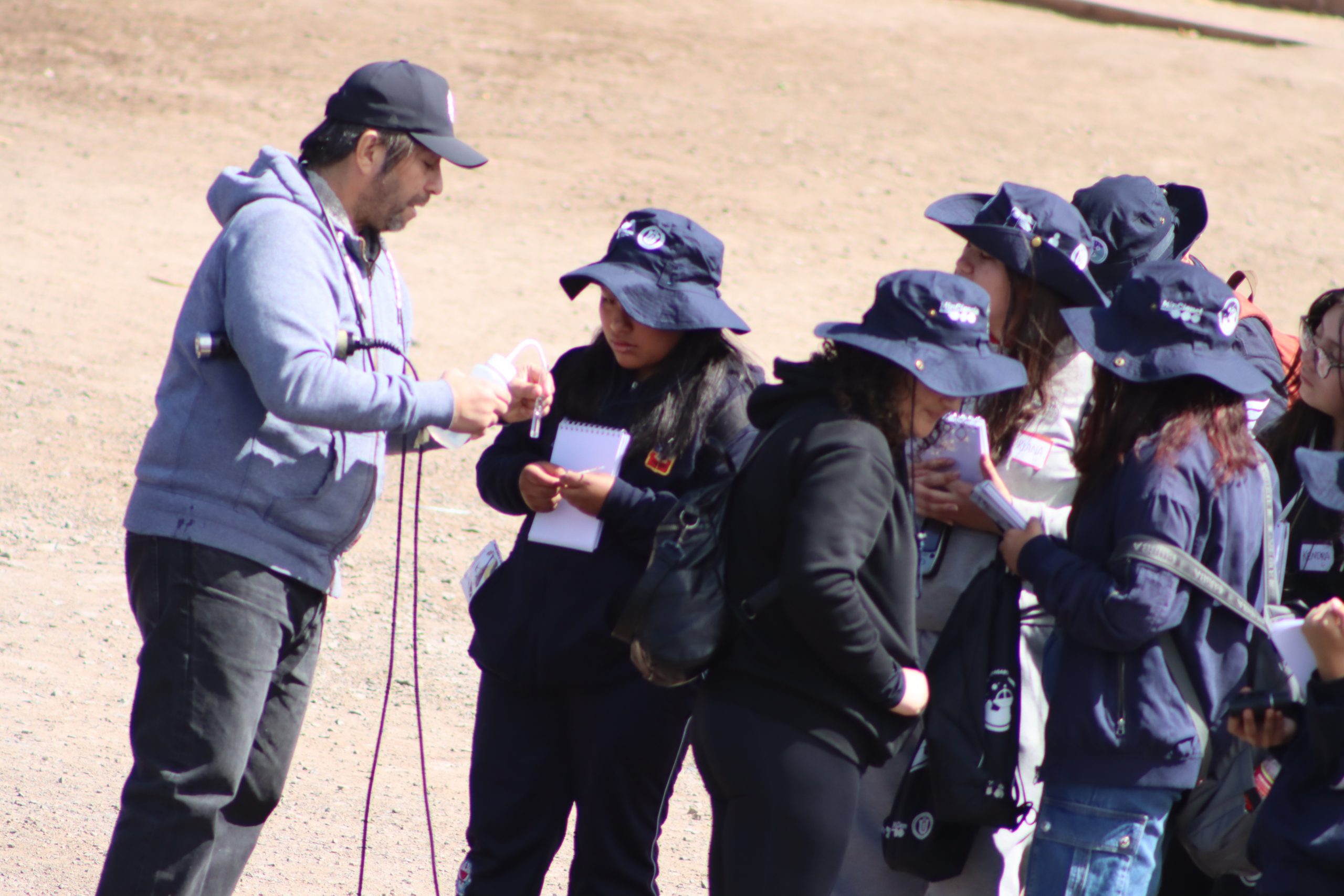 Durante la jornada, los y las estudiantes trabajaron con un cuaderno de campo diseñado para documentar observaciones y reflexiones sobre flora y fauna nativa, endémica e introducida, calidad del agua y análisis ambiental, migración de aves y su rol ecológico, ADN ambiental como herramienta de monitoreo y patrimonio arqueológico y cultural del parque. Los talleres en terreno estuvieron a cargo de Carlos Bustamante Díaz, Biólogo Marino y Doctor en Ecología Marina, Manuel Zapata, Doctor en Biología Marina, junto con Francisca Oliva, Coordinadora Centro de la Biodiversidad y Conservación El Loa, quienes guiaron las actividades de muestreo, observación y análisis, promoviendo el trabajo colaborativo y el pensamiento crítico.