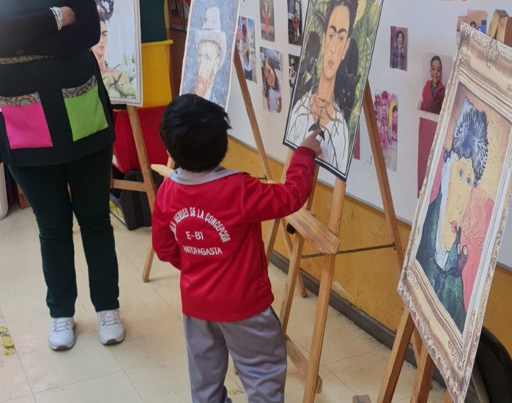 En este contexto, la experiencia “Aldea de los colores” se transformó en un espacio único de exploración. Los estudiantes conocieron a artistas referentes, observaron distintas técnicas pictóricas y dialogaron sobre los sentimientos que transmiten las obras. Posteriormente, fueron invitados a crear sus propios autorretratos, utilizando colores, formas y detalles que reflejaban su identidad y emociones. Cada obra fue nombrada por los propios niños, quienes explicaron el porqué de su elección, demostrando no solo su capacidad expresiva, sino también habilidades de reflexión y comunicación.