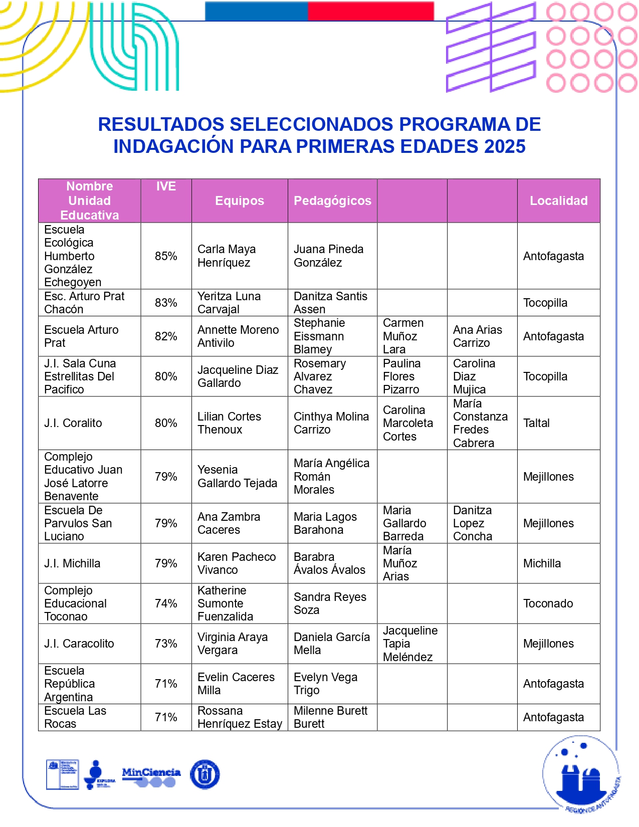 Agradecemos a todas las instituciones y profesionales que han postulado, demostrando su compromiso con el fortalecimiento de la educación científica en etapas tempranas. La incorporación de nuevos equipos a PIPE 2025 representa un avance significativo en la promoción de habilidades fundamentales para el aprendizaje y el desarrollo integral de niños y niñas.