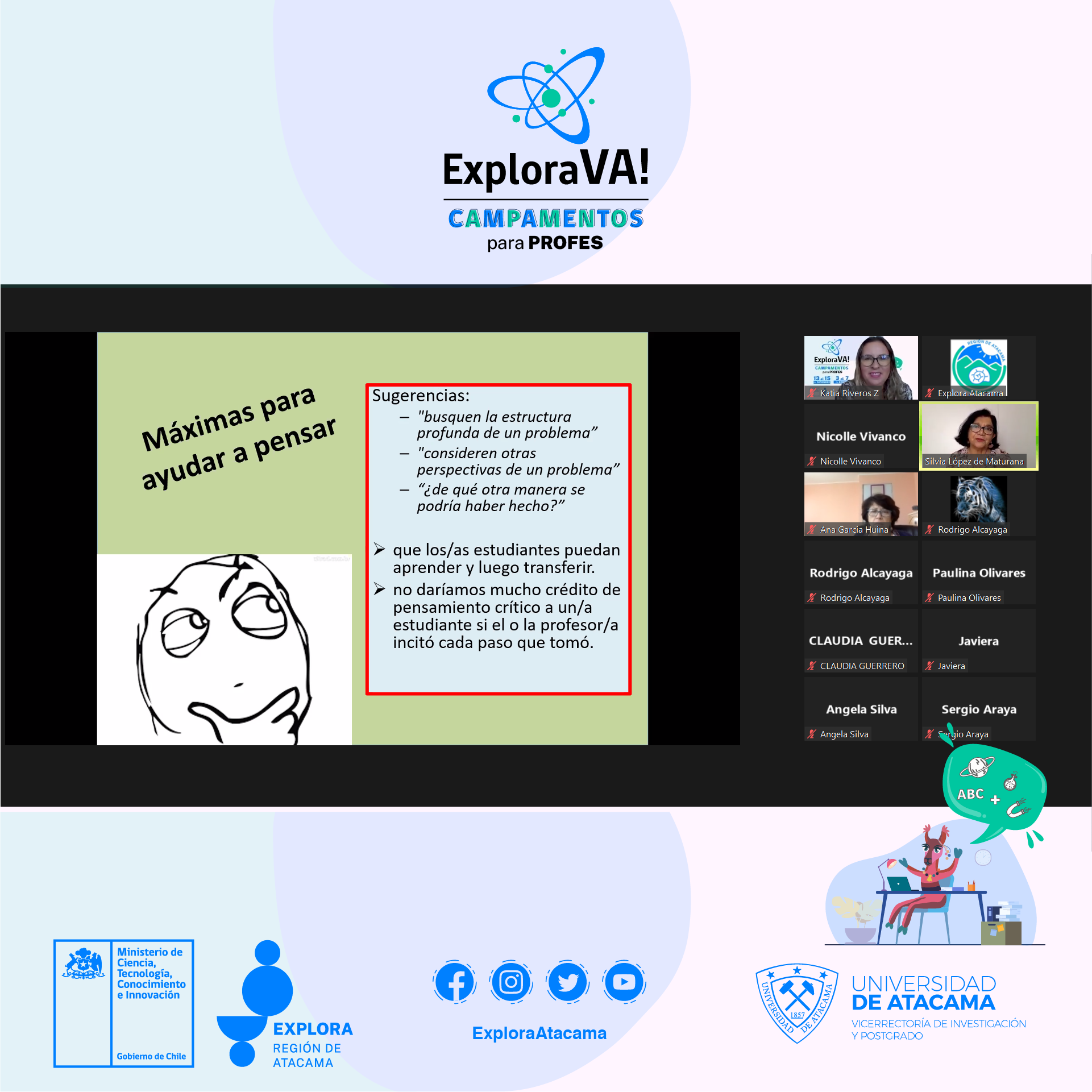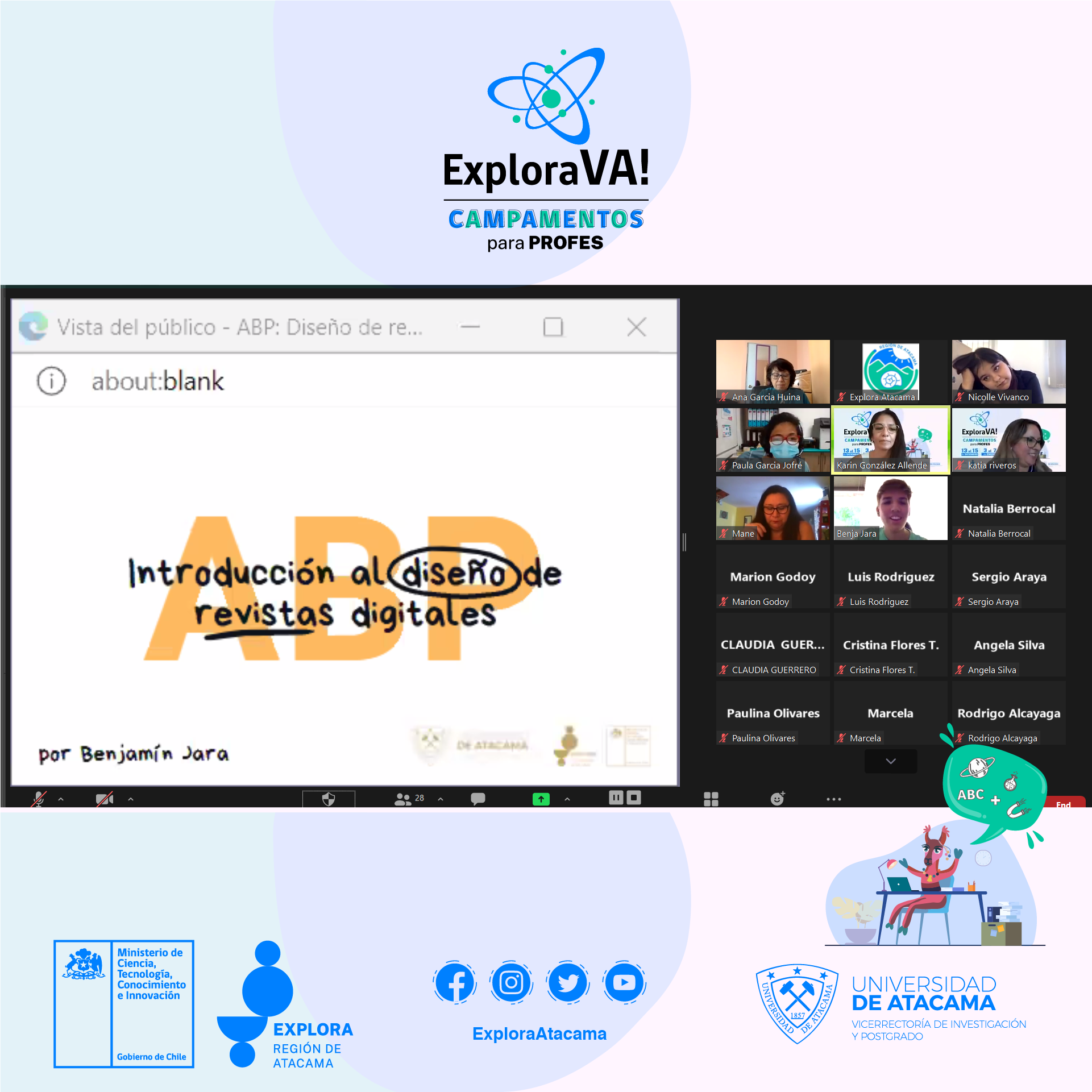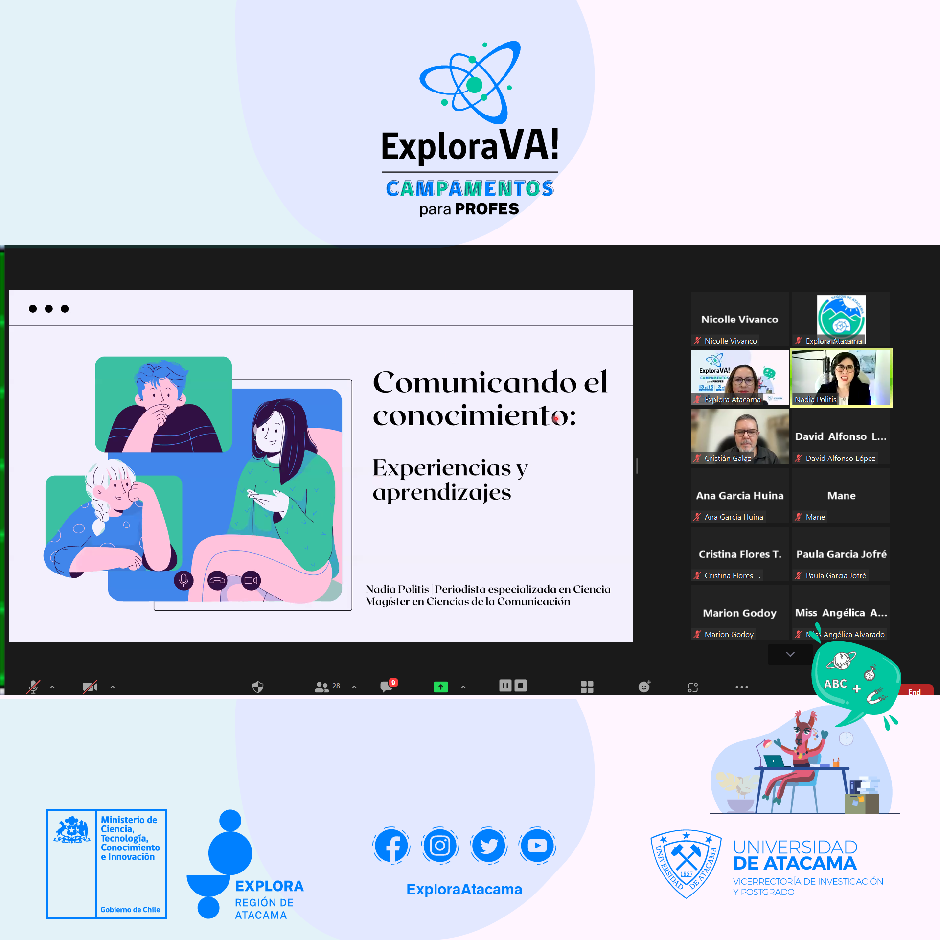Este encuentro fue organizado por el Proyecto Explora Atacama que es ejecutado gracias a los fondos y los lineamientos de la División Ciencia y Sociedad del Ministerio de Ciencia, Tecnología, Conocimiento e Innovación a través de los programas Explora y Ciencia Pública y que ejecuta la Universidad de Atacama, que con este instrumento buscó potenciar la apropiación de herramientas pedagógicas basadas en el modelo de competencias y se promovió la formación de comunidades de aprendizaje con actividades lúdicas, replicables en las aulas, charlas lideradas por expertos de diferentes áreas y un extenso diálogo entre los asistentes.
