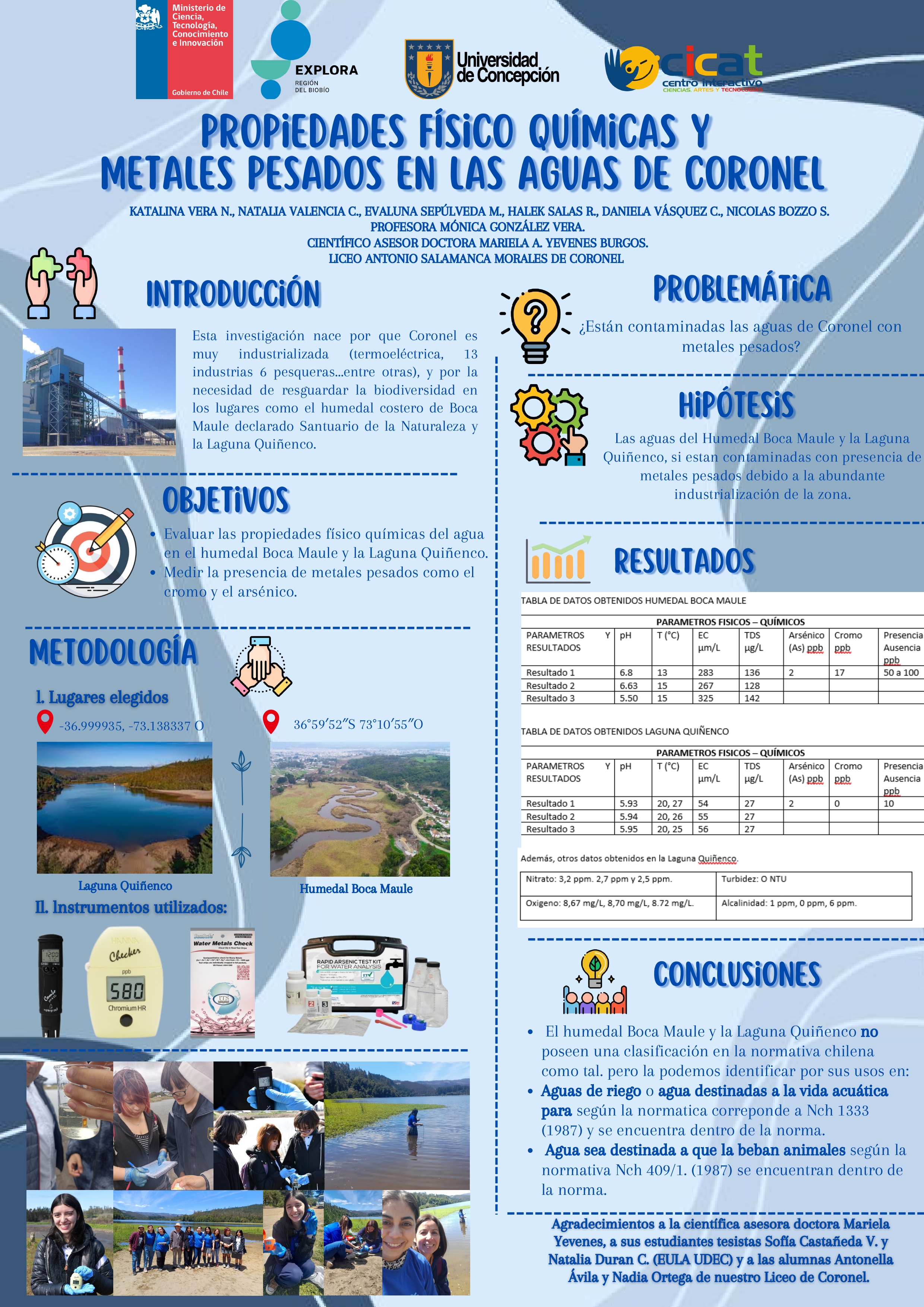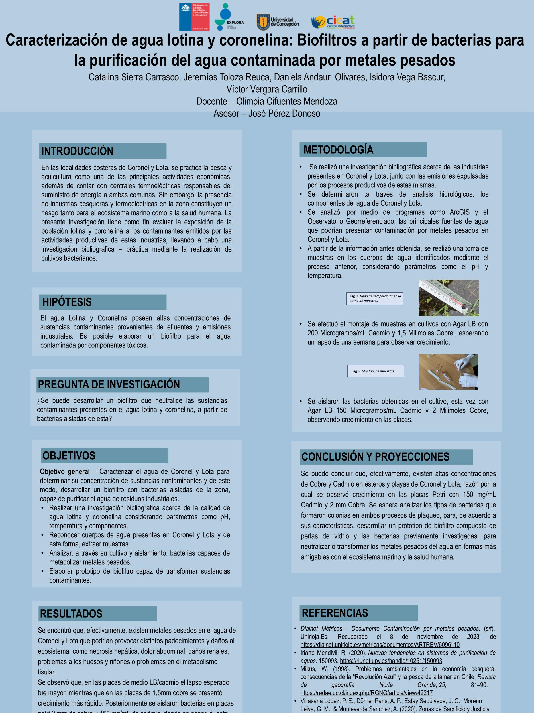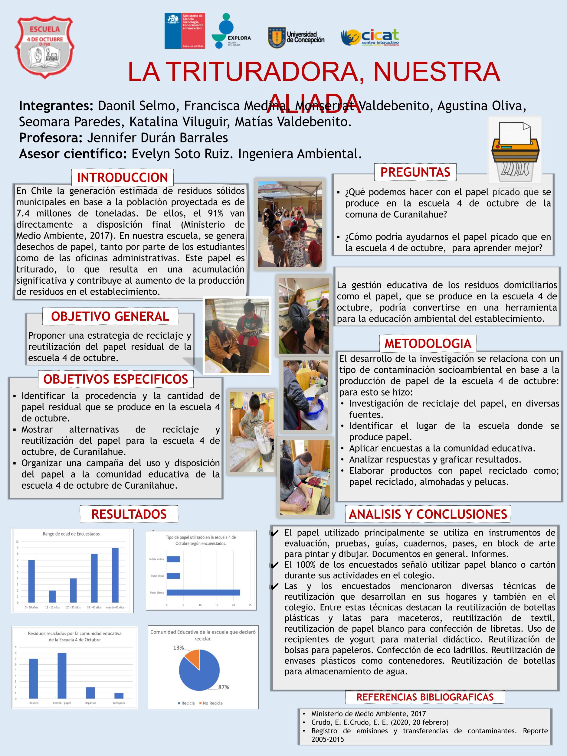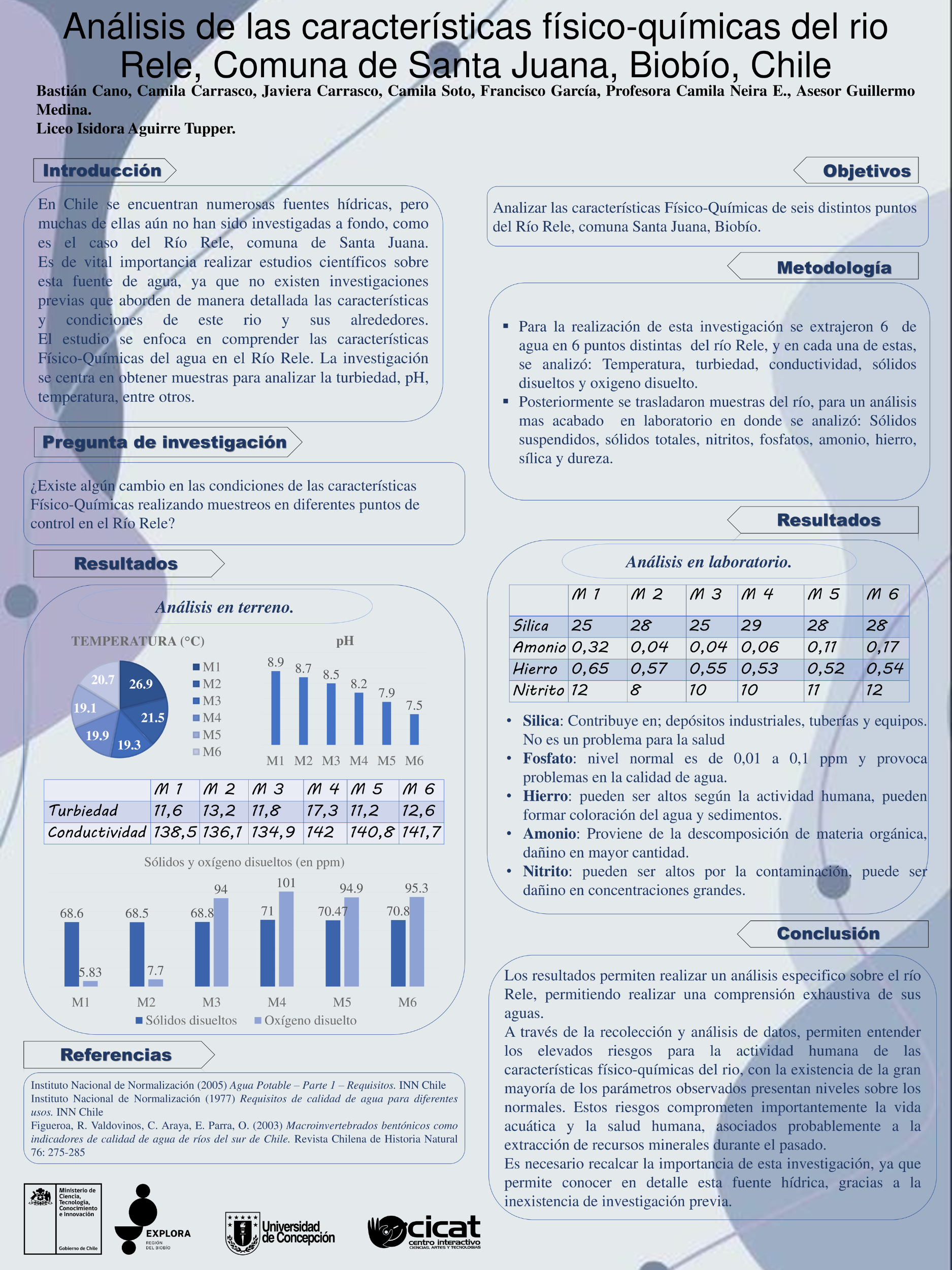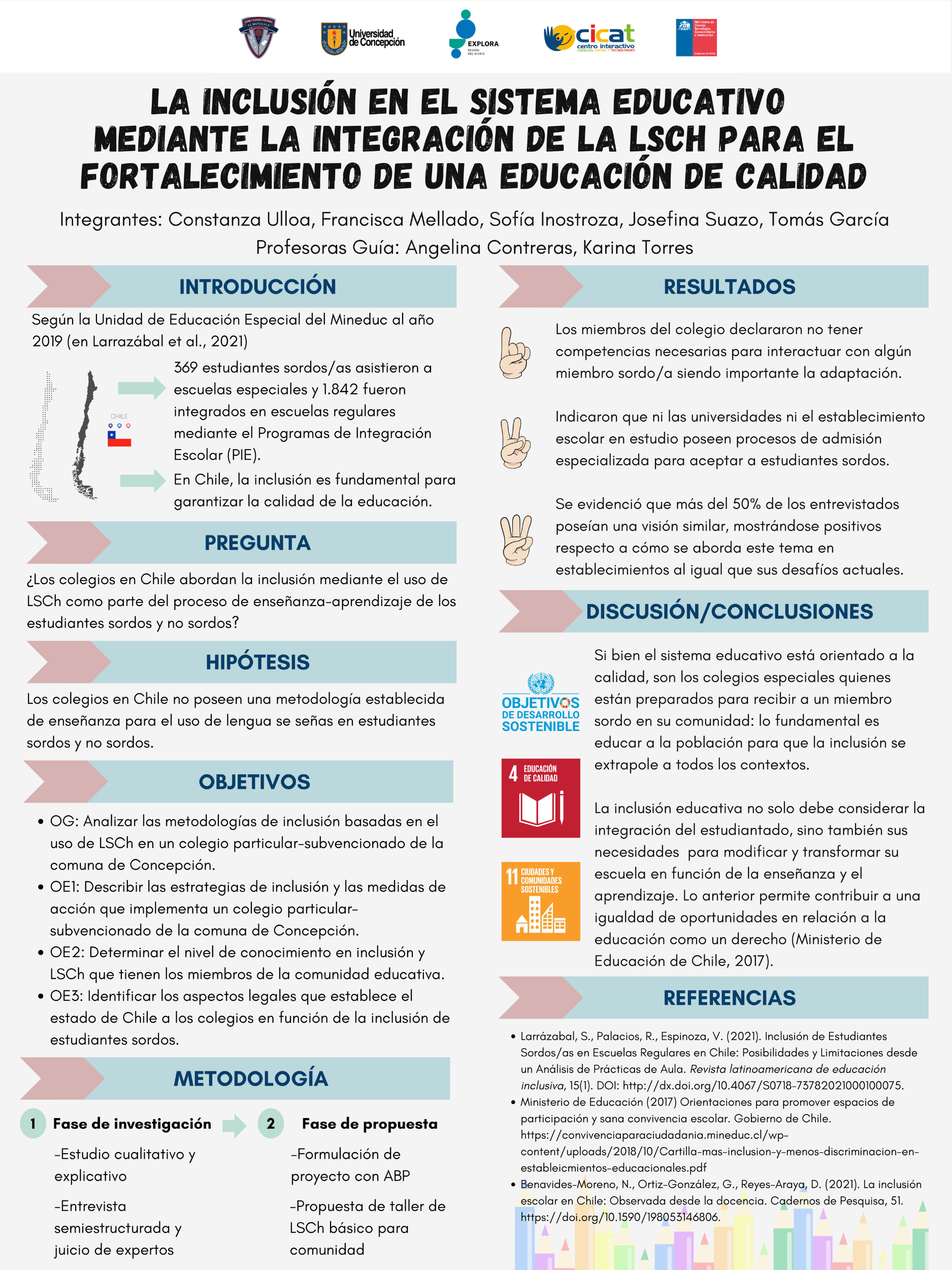 Dentro de su investigación, el último de los pasos es la comunicación de sus hallazgos y resultados, hecho que se vivió el 23 de noviembre pasado en la Universidad de Concepción, donde debieron exponer sus proyectos ante delegaciones de estudiantes, la comunidad universitaria y el comité revisor, quienes dieron una retroalimentación de los proyectos.