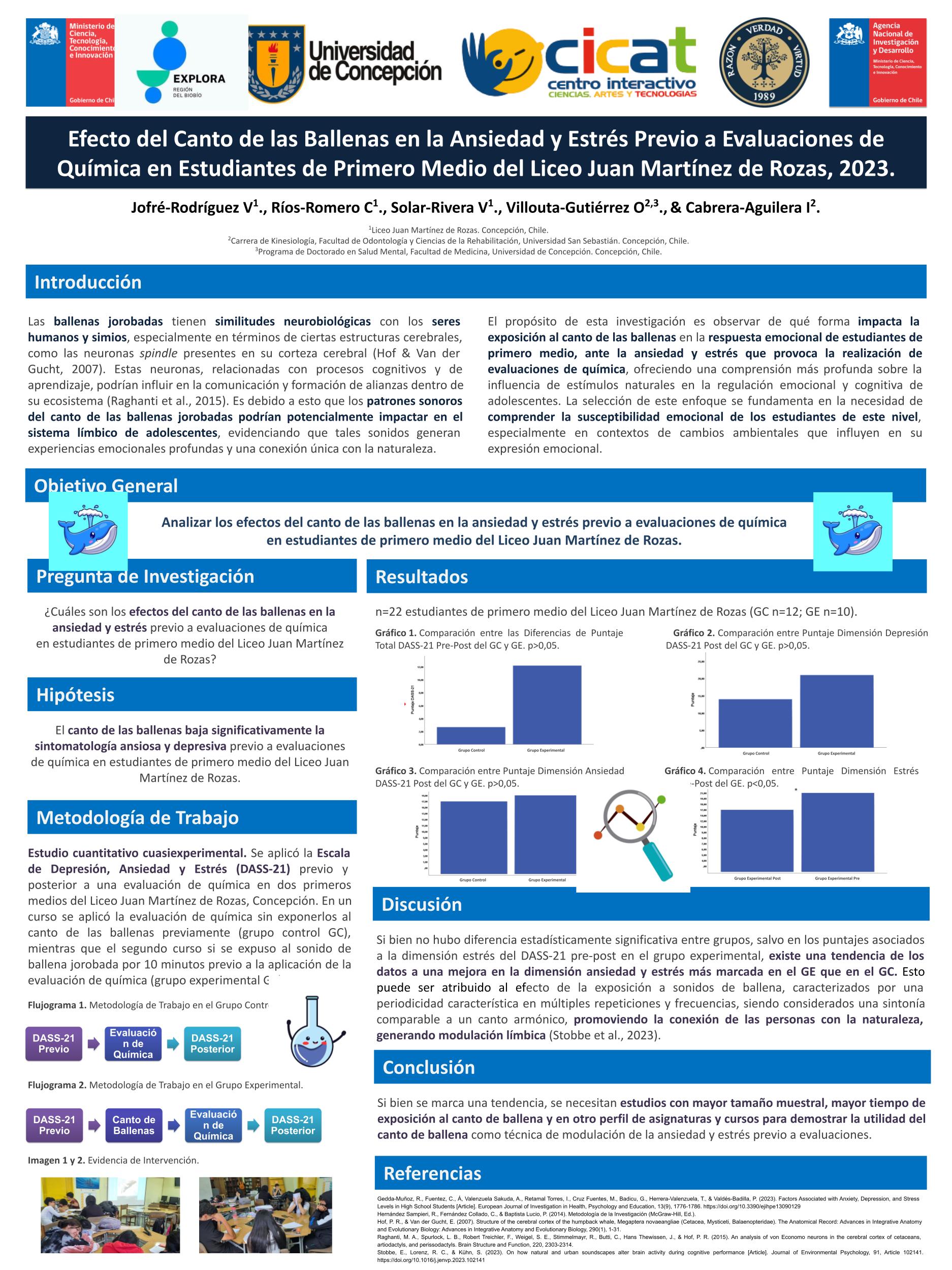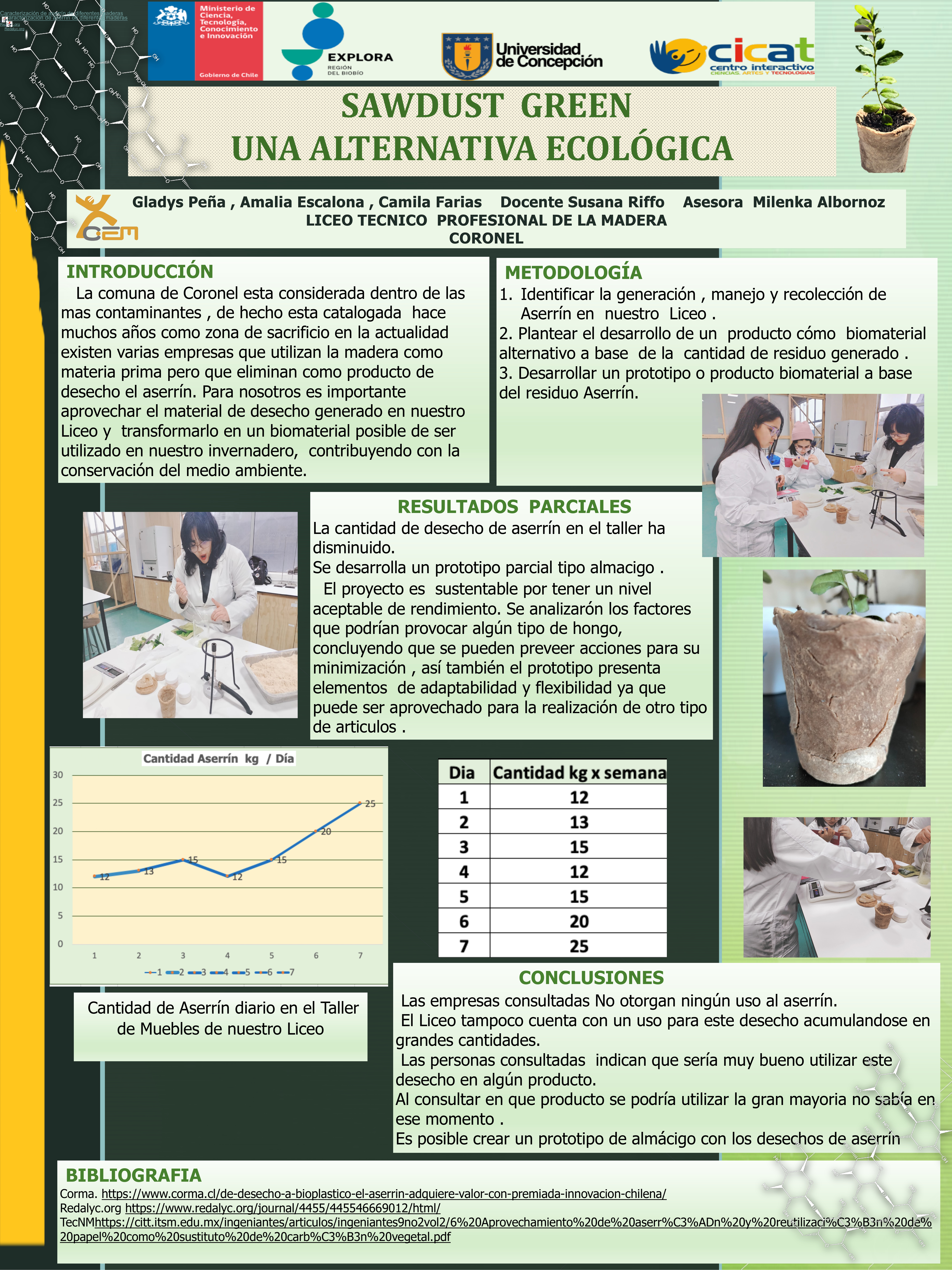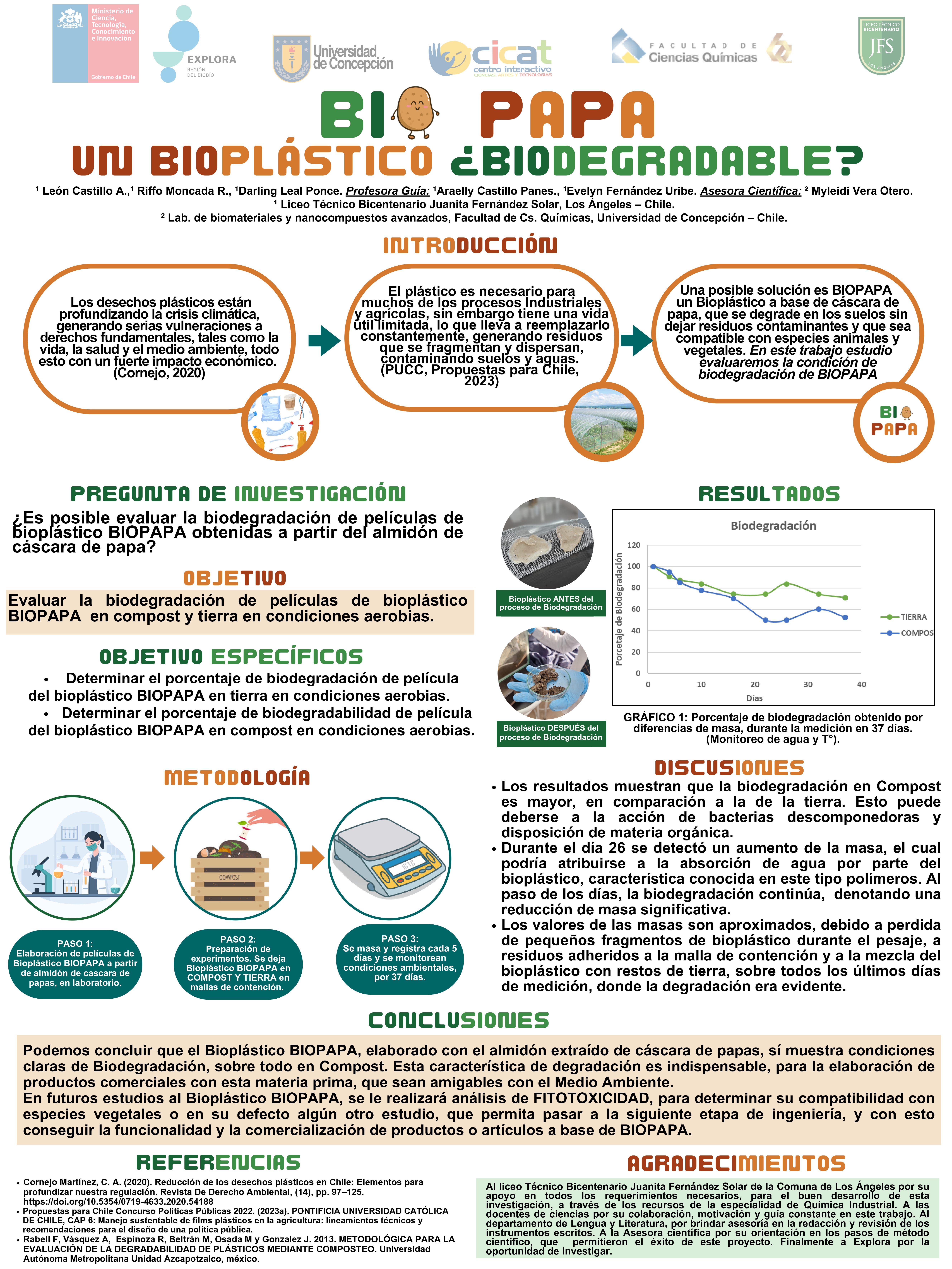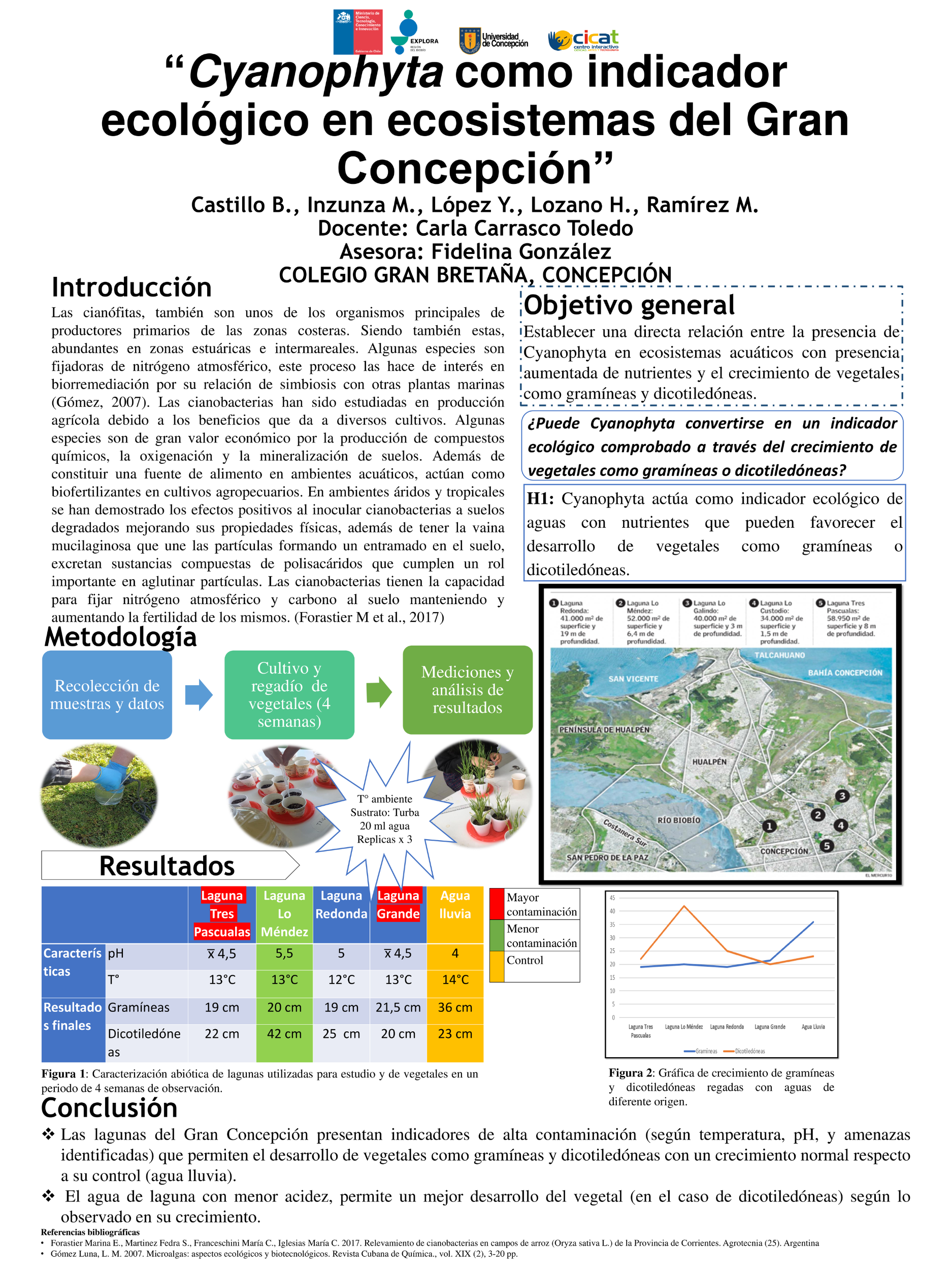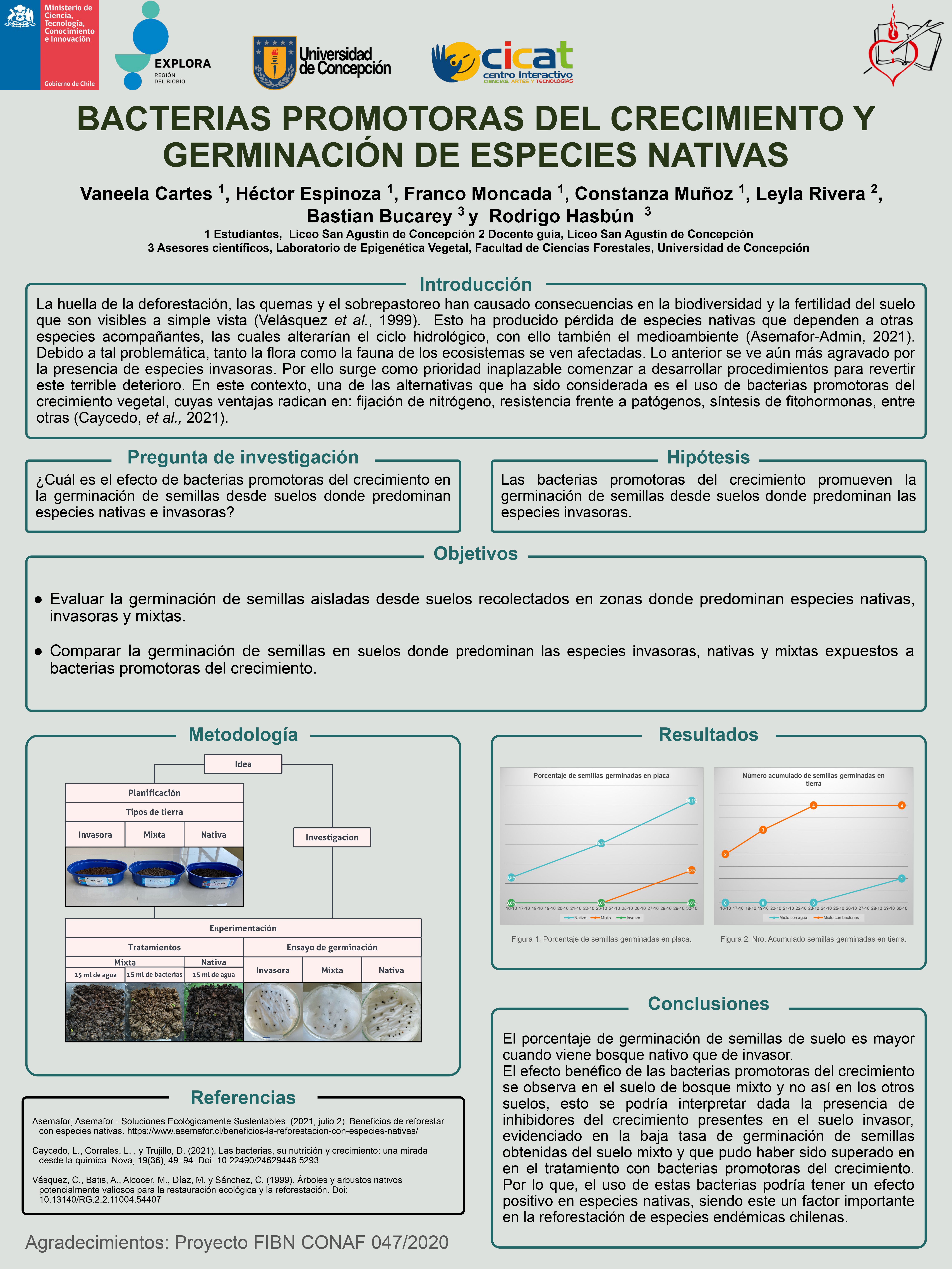 Dentro de su investigación, el último de los pasos es la comunicación de sus hallazgos y resultados, hecho que se vivió el 23 de noviembre pasado en la Universidad de Concepción, donde debieron exponer sus proyectos ante delegaciones de estudiantes, la comunidad universitaria y el comité revisor, quienes dieron una retroalimentación de los proyectos.