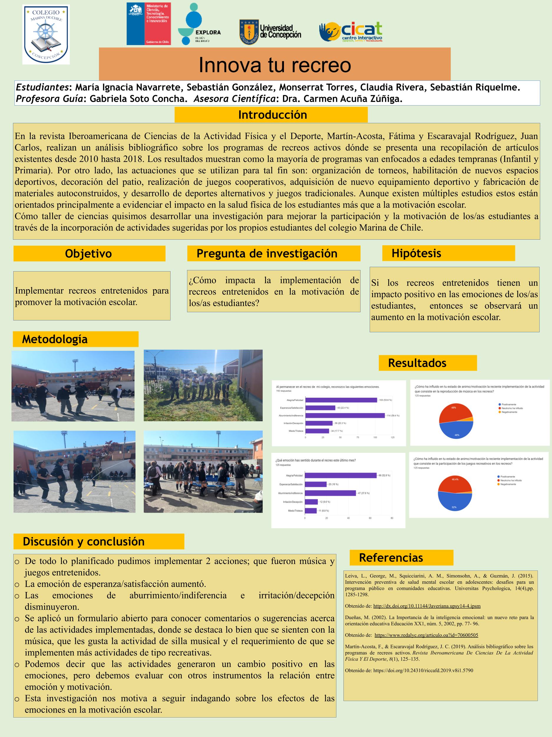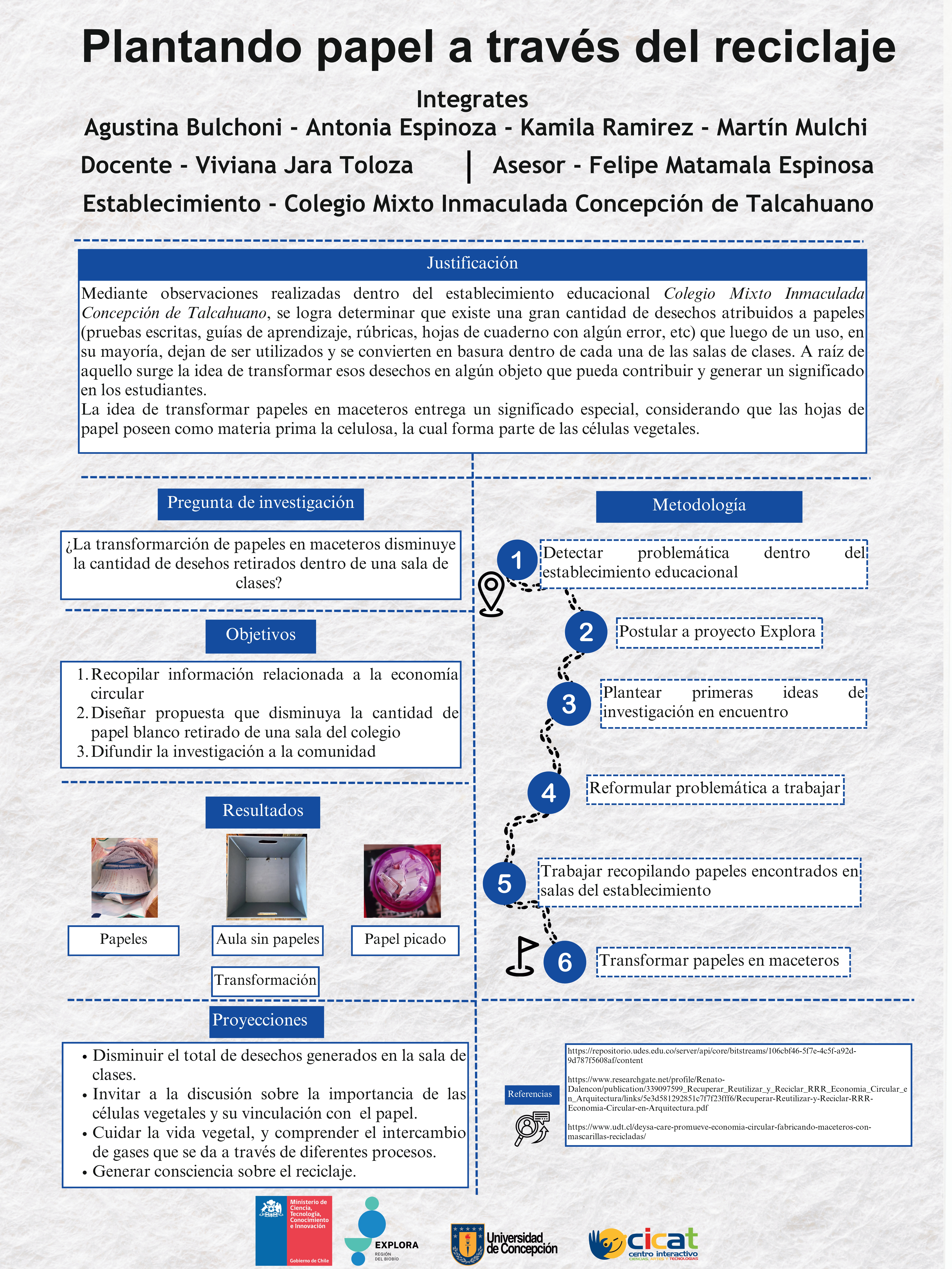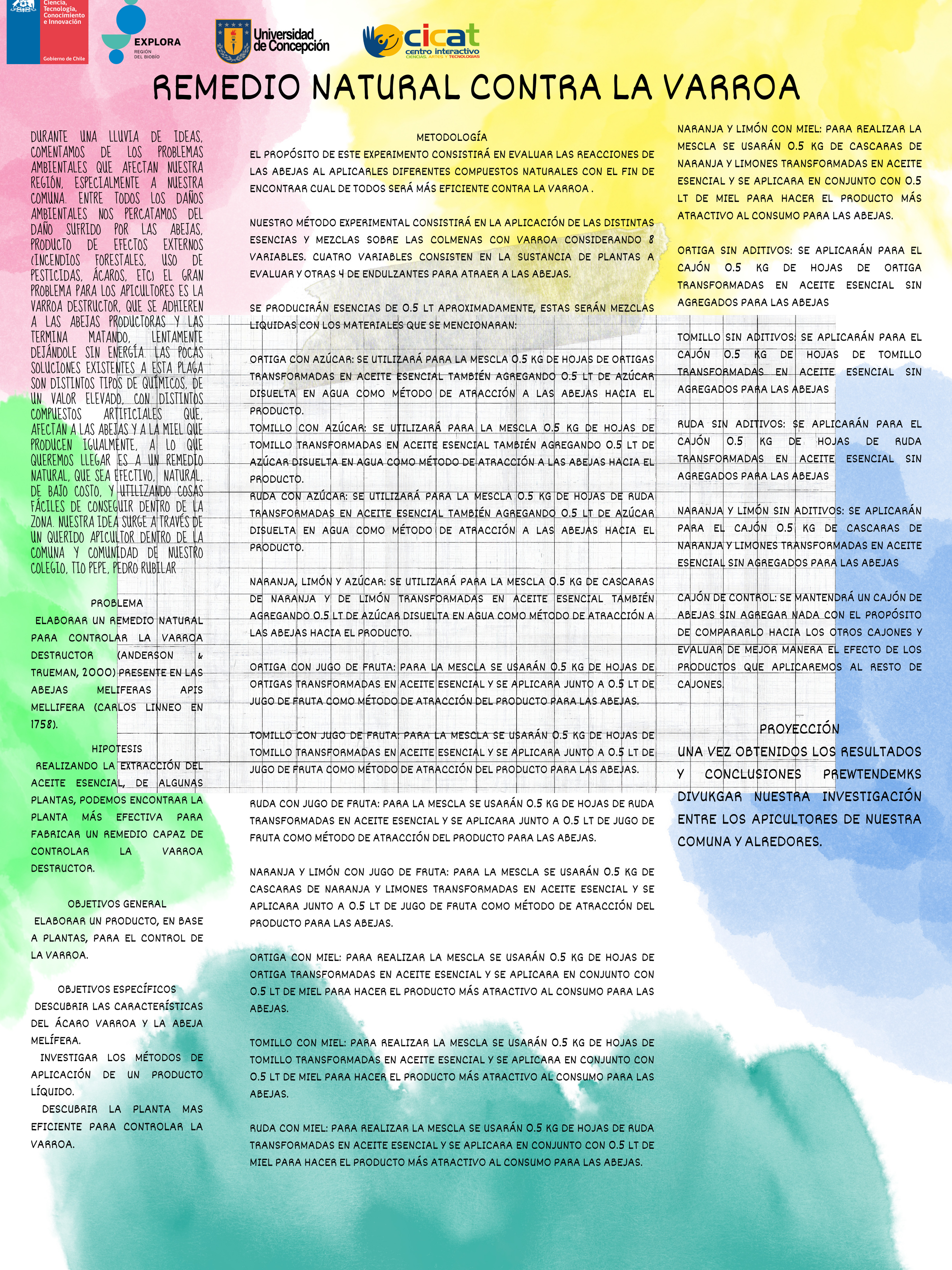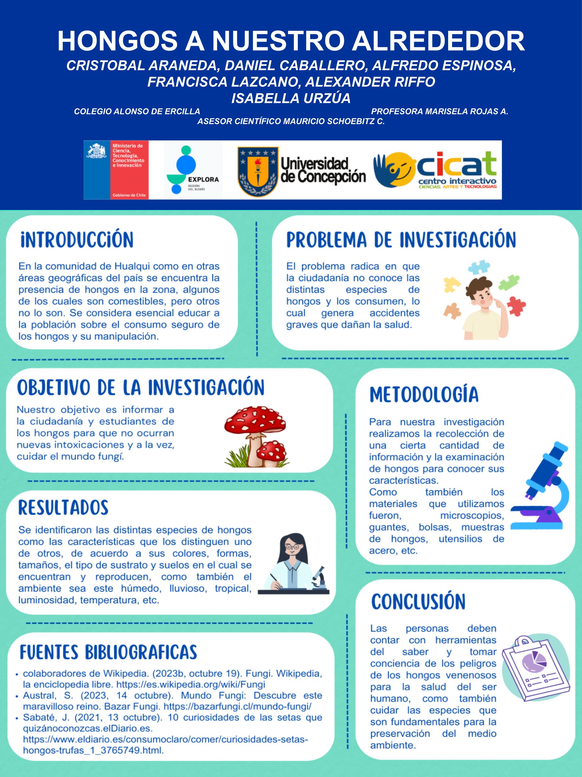 A continuación, te compartimos las diversas investigaciones de este año, donde están resumidos todos los pasos de sus proyectos en un póster científico, el cual también reforzó la exposición de los hallazgos de los grupos.