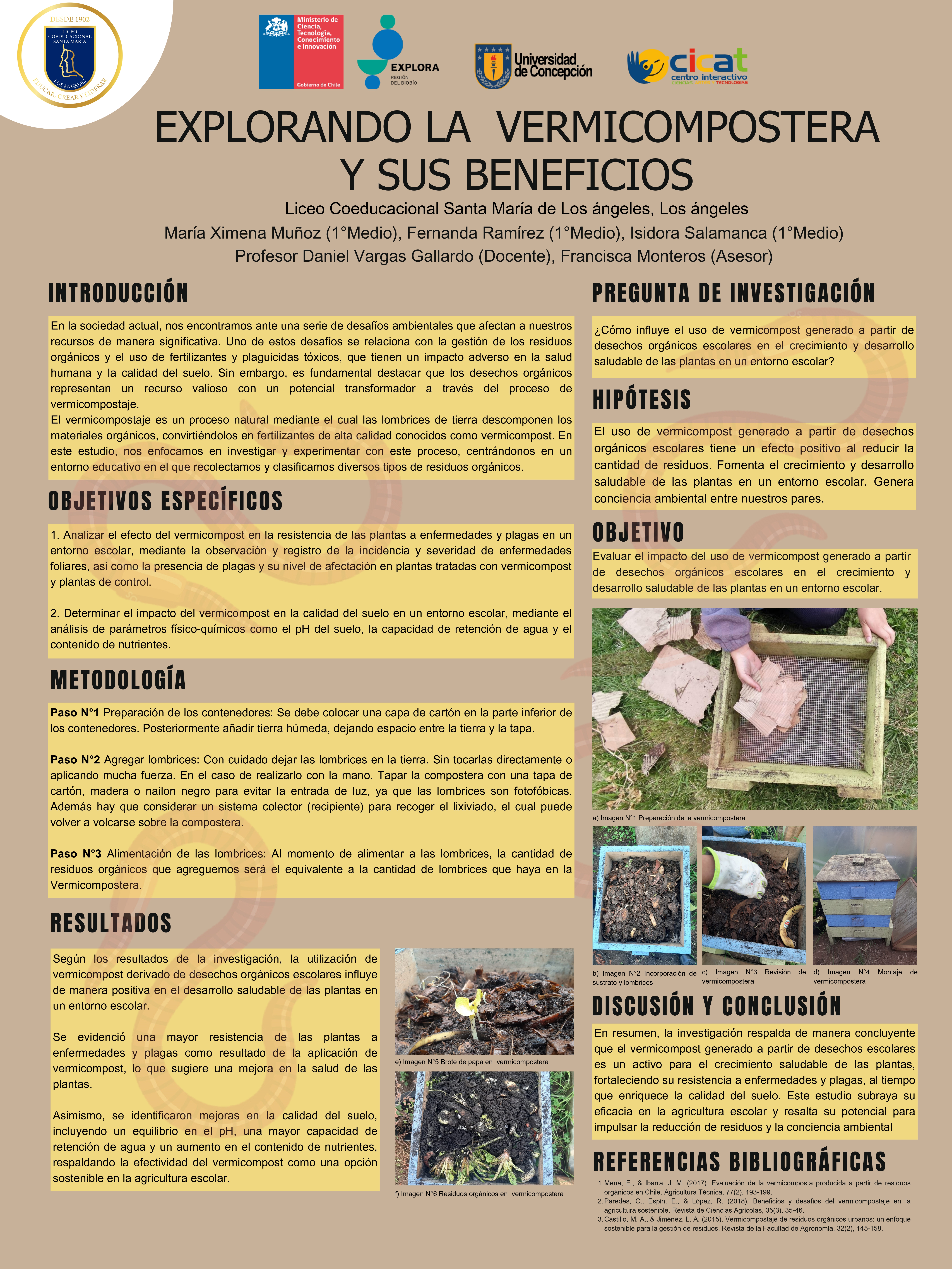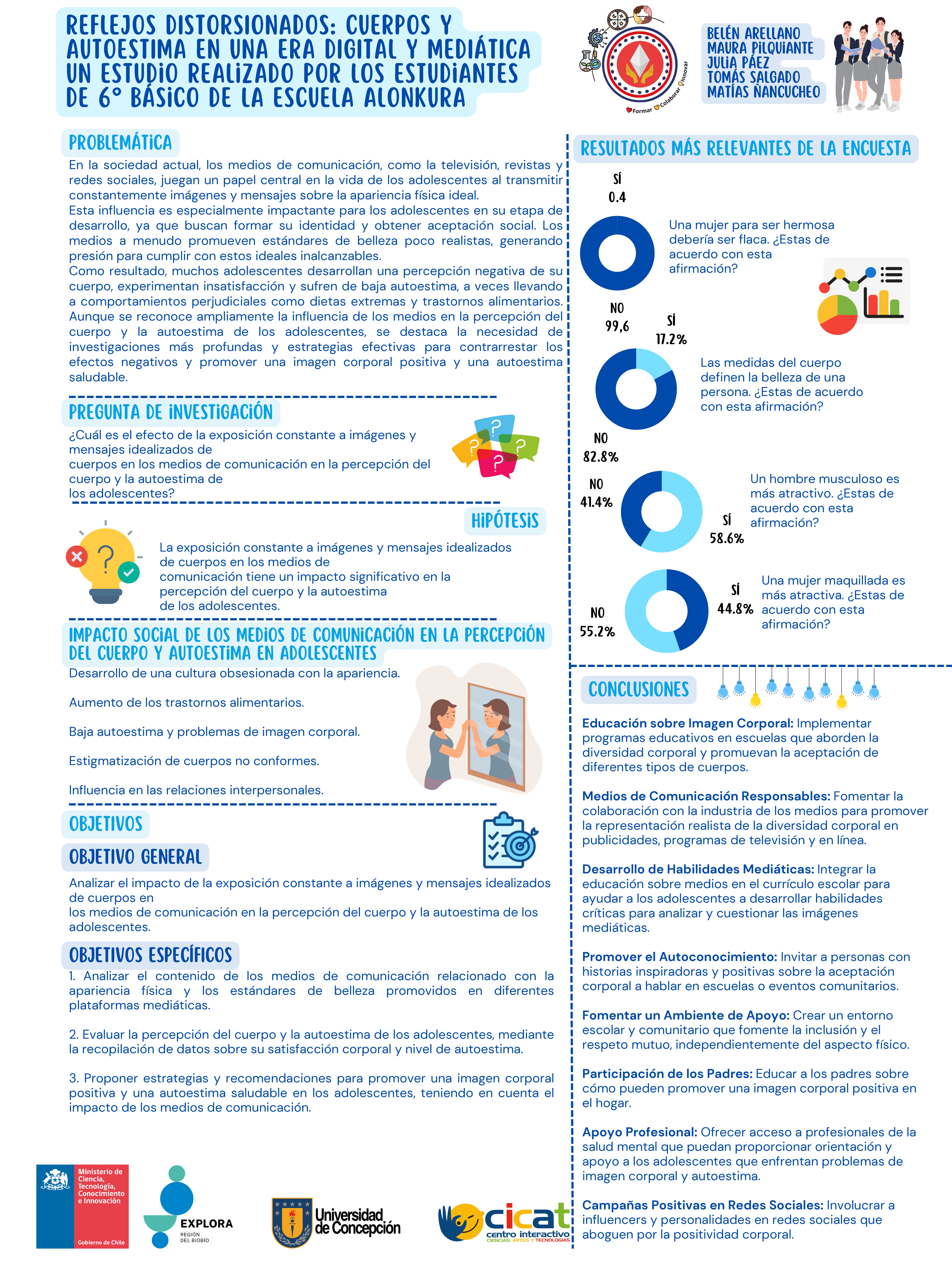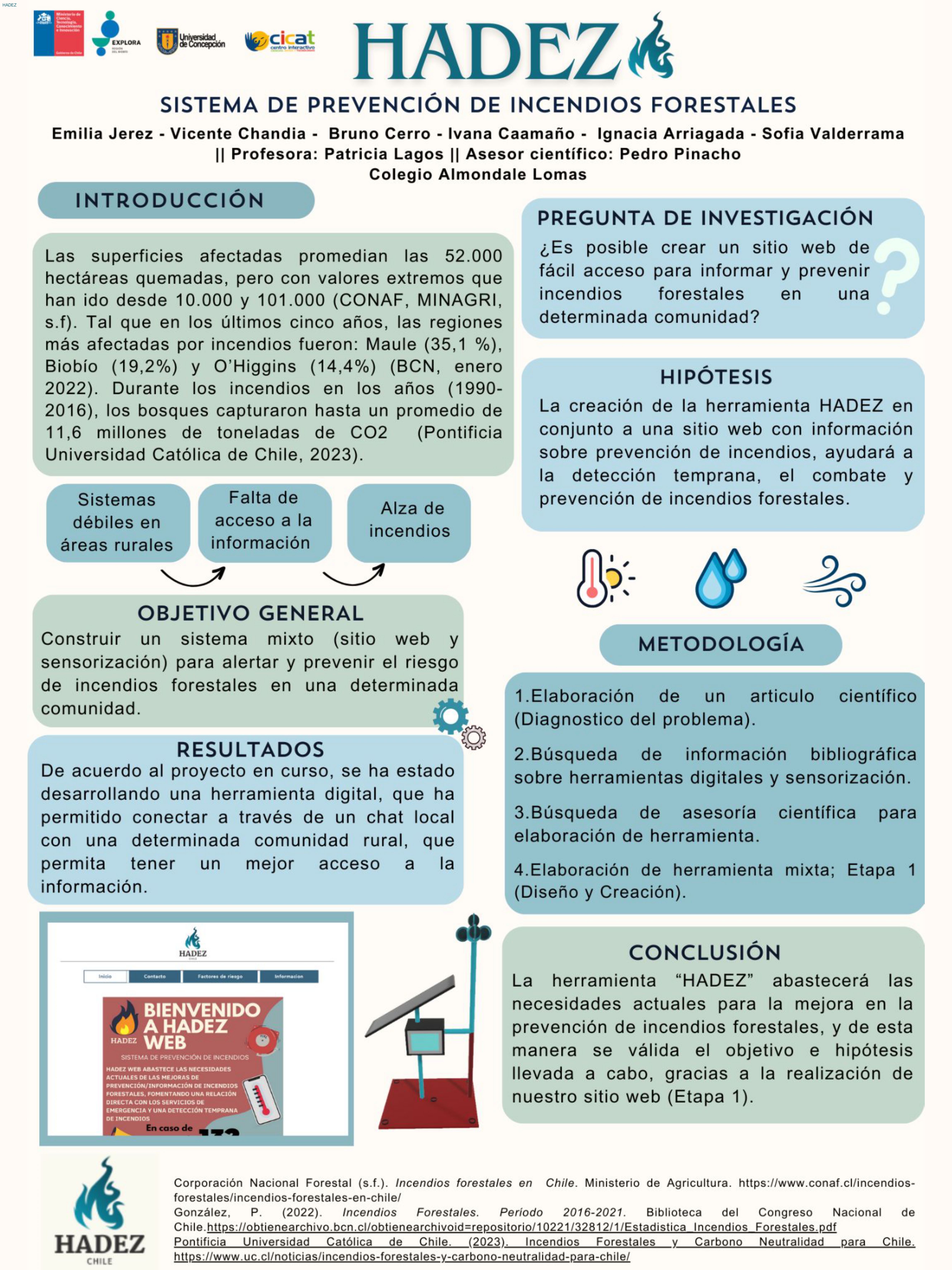 A continuación, te compartimos las diversas investigaciones de este año, donde están resumidos todos los pasos de sus proyectos en un póster científico, el cual también reforzó la exposición de los hallazgos de los grupos.