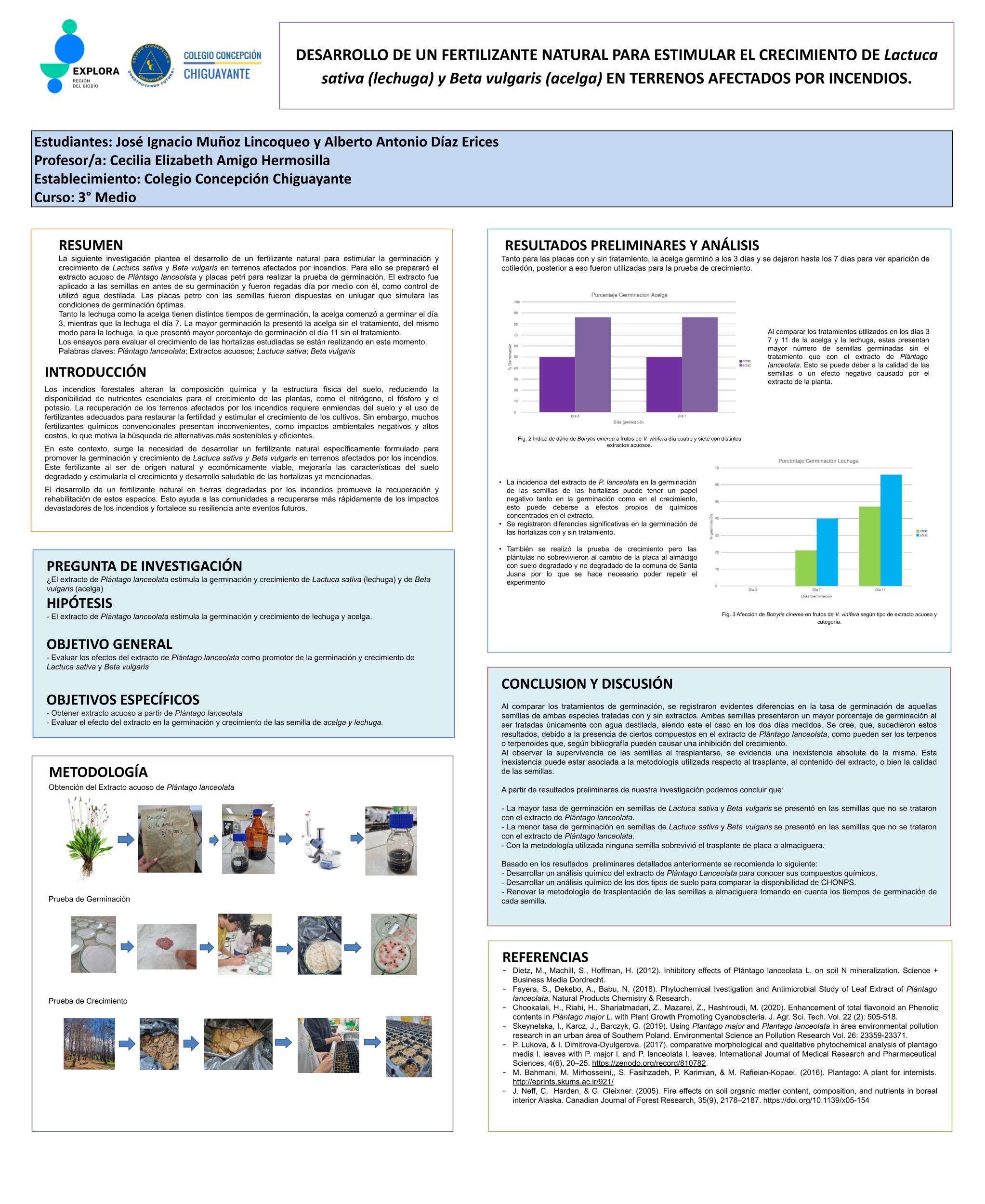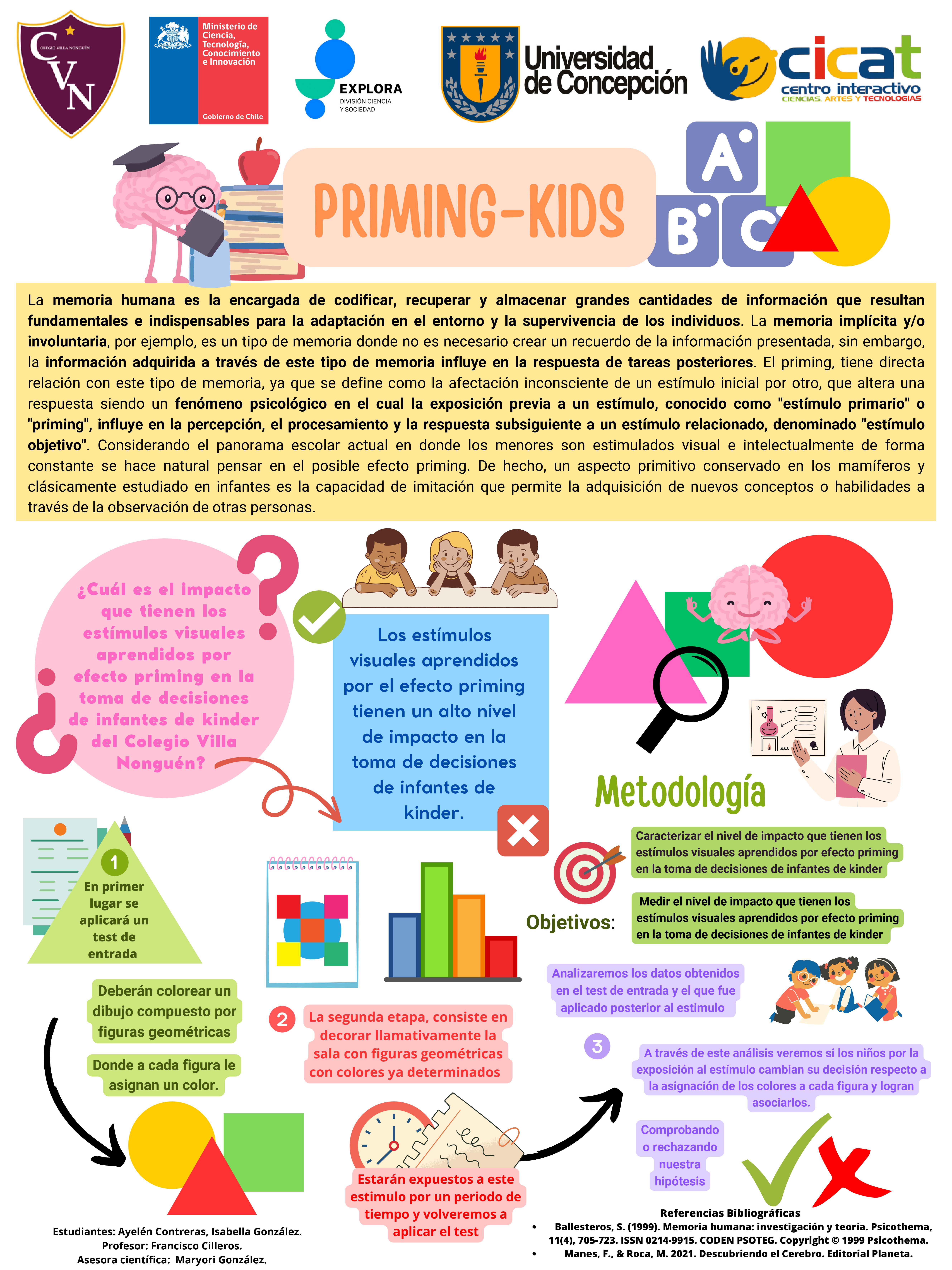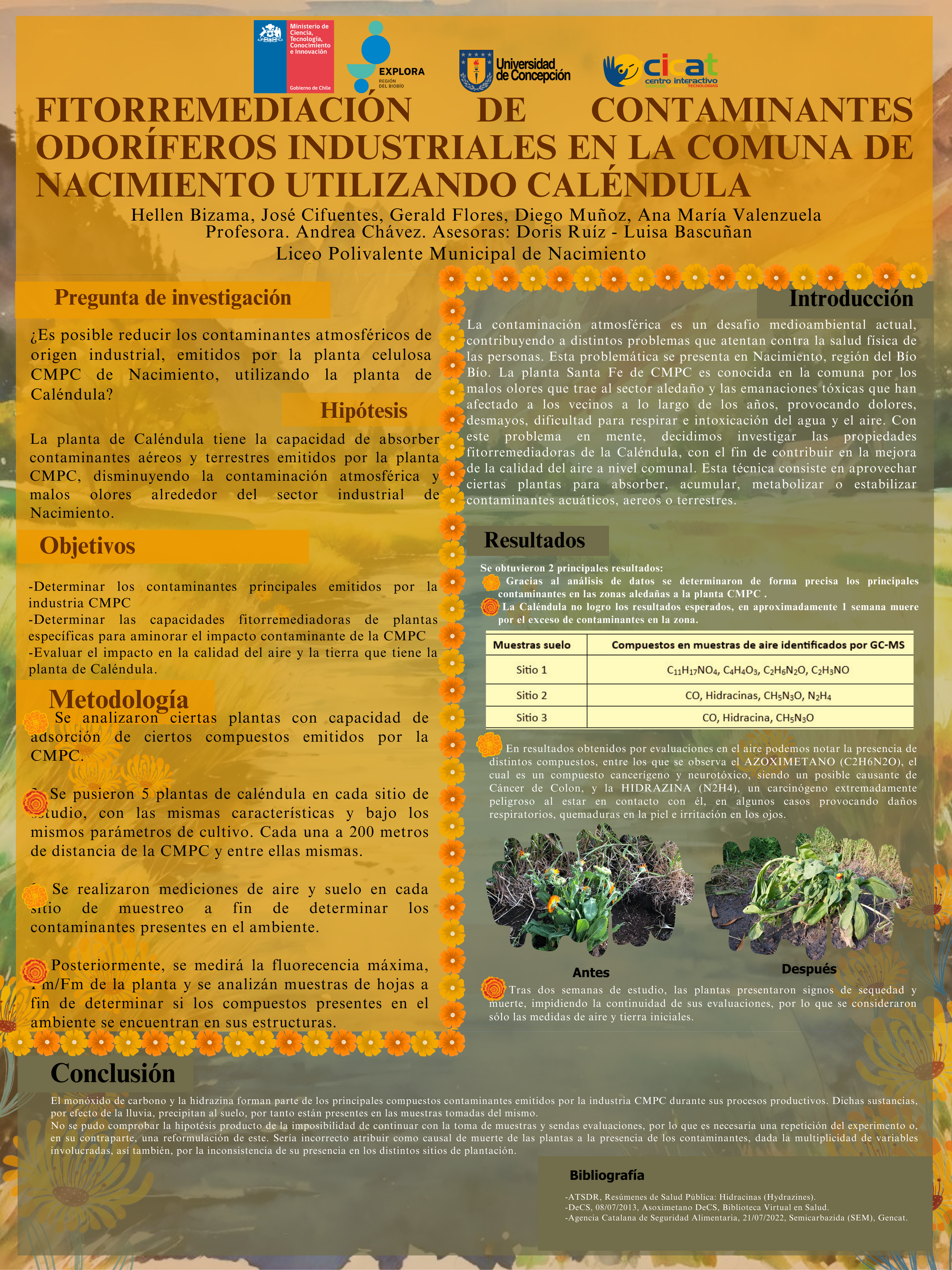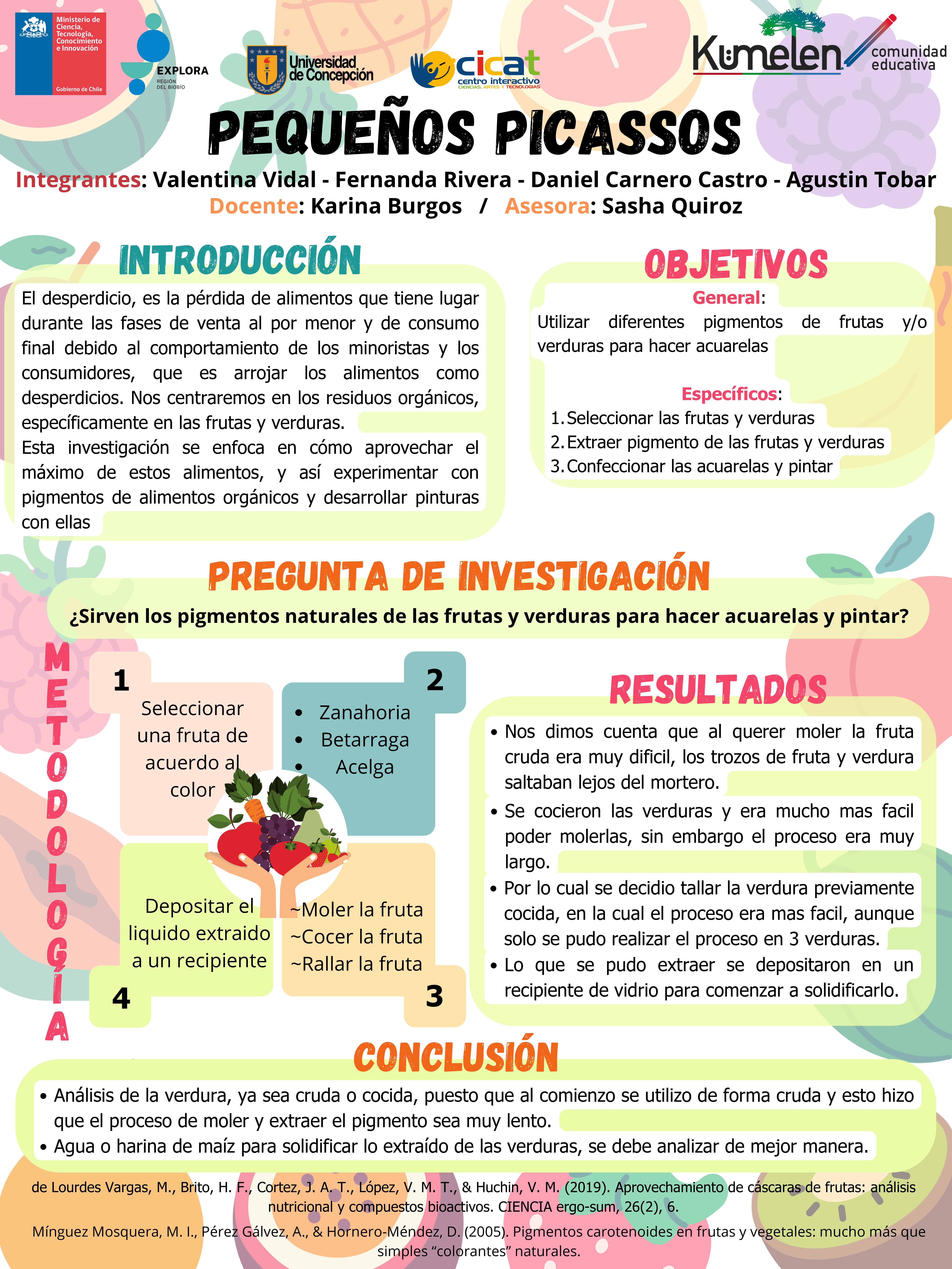 A continuación, te compartimos las diversas investigaciones de este año, donde están resumidos todos los pasos de sus proyectos en un póster científico, el cual también reforzó la exposición de los hallazgos de los grupos.