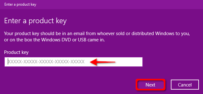 Los clientes escriben estas claves en un mensaje solicitado durante el proceso de configuración de Windows 10. Al igual que las instalaciones basadas en OEM, estas claves están vinculadas a cuentas de Microsoft.