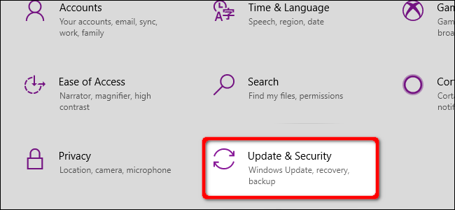 Haga clic en el mosaico "Actualización y seguridad". También puede presionar el enlace "Windows no está activado. Activar Windows ahora" en la parte inferior de la aplicación Configuración.