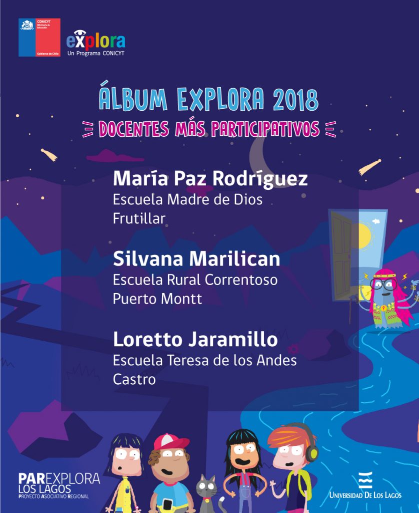 Cabe destacar que durante los últimos meses los docentes hicieron llegar las evidencias de las actividades del álbum, éstas fueron revisadas por un comité evaluador compuesto por María José Bergma, académica de la carrera de Educación Parvularia de la Universidad de Los Lagos; Karina Bravo, coordinadora ejecutiva del PAR Explora Los Lagos y Paulina Lobos, encargada de Valoración de Explora Los Lagos.