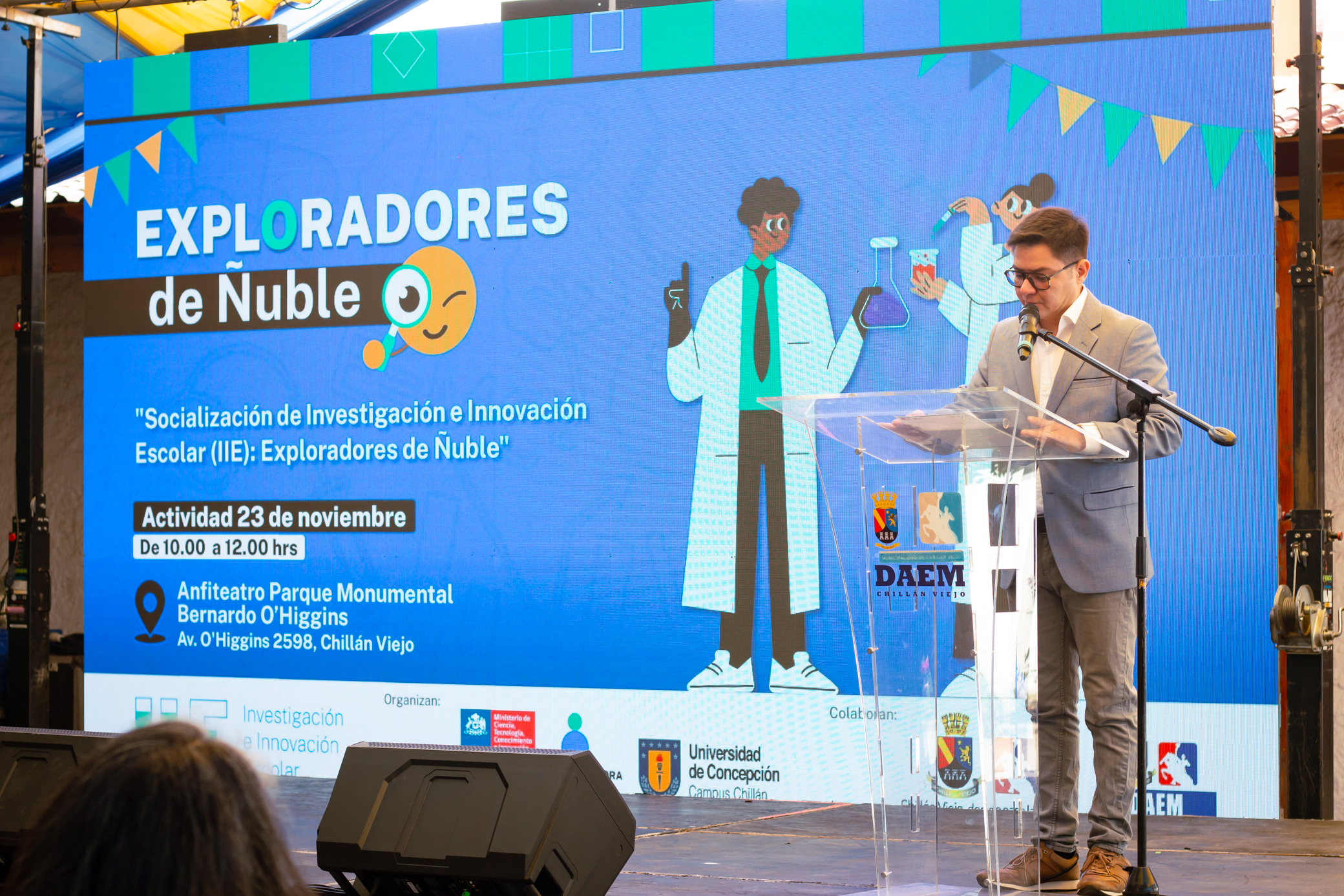 “Exploradores de Ñuble” fue el título que se le dio a esta actividad que se enmarca en la instancia denominada “Investigación e Innovación Escolar (IIE)” y es uno de los 4 programas que el Proyecto Asociativo Regional (PAR) Explora Ñuble viene desarrollando este 2023, bajo la ejecución del Campus Chillán de la Universidad de Concepción, y que es mandatado por el Ministerio de Ciencia, Tecnología, Conocimiento e Innovación.