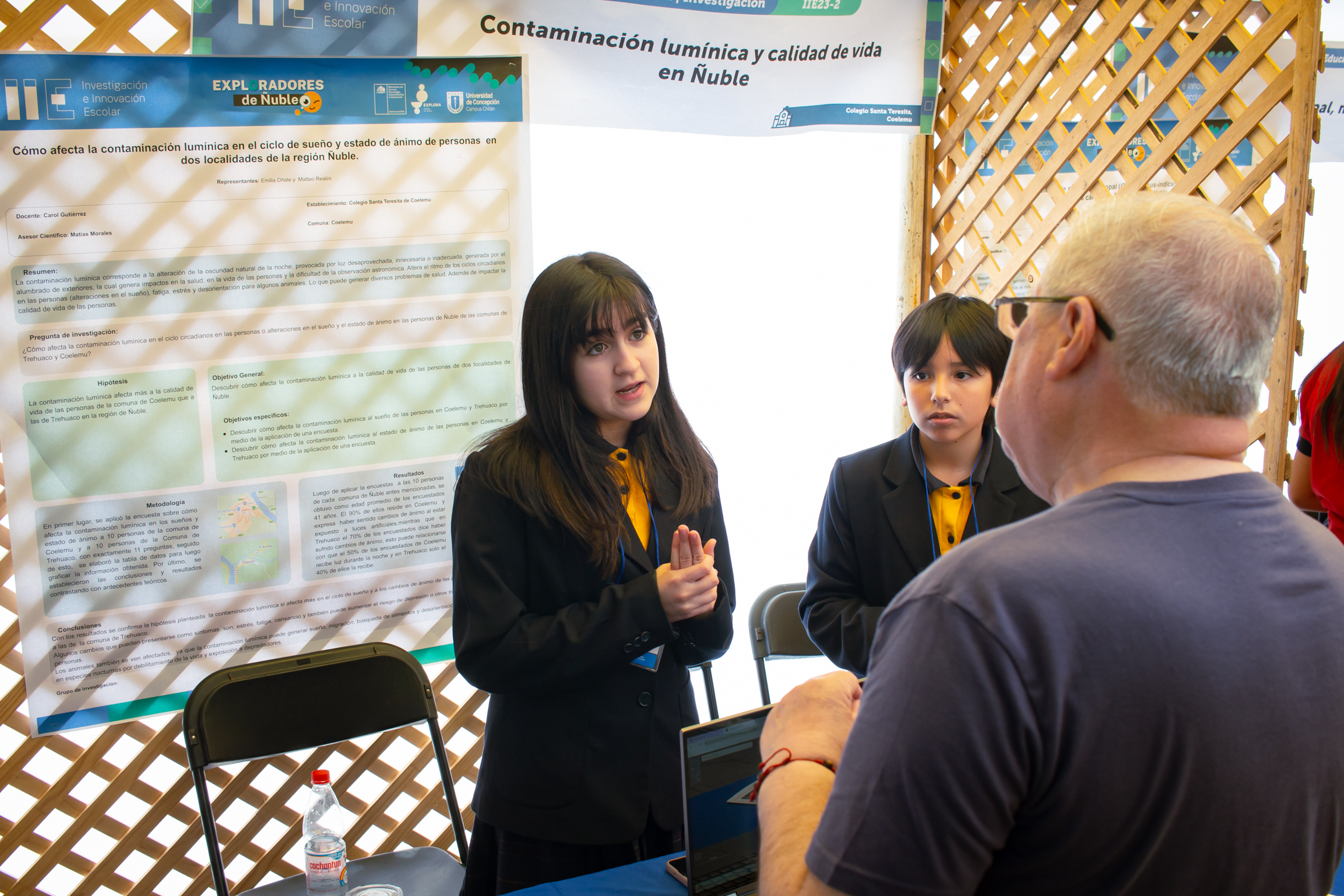 María Carolina Fuentes, docente del Liceo Tomás Lago de Chillán Viejo estuvo en “Exploradores de Ñuble” junto a su curso, al respecto señala: “quedé gratamente impresionada por la organización y por las temáticas expuestas en los stands, los chicos y chicas estaban muy preparados y eso me sorprendió gratamente. Al ser consultada por la posibilidad de participar con su equipo en IIE el próximo año señaló: “absolutamente; quedamos muy motivados y entusiasmados con esta experiencia”.