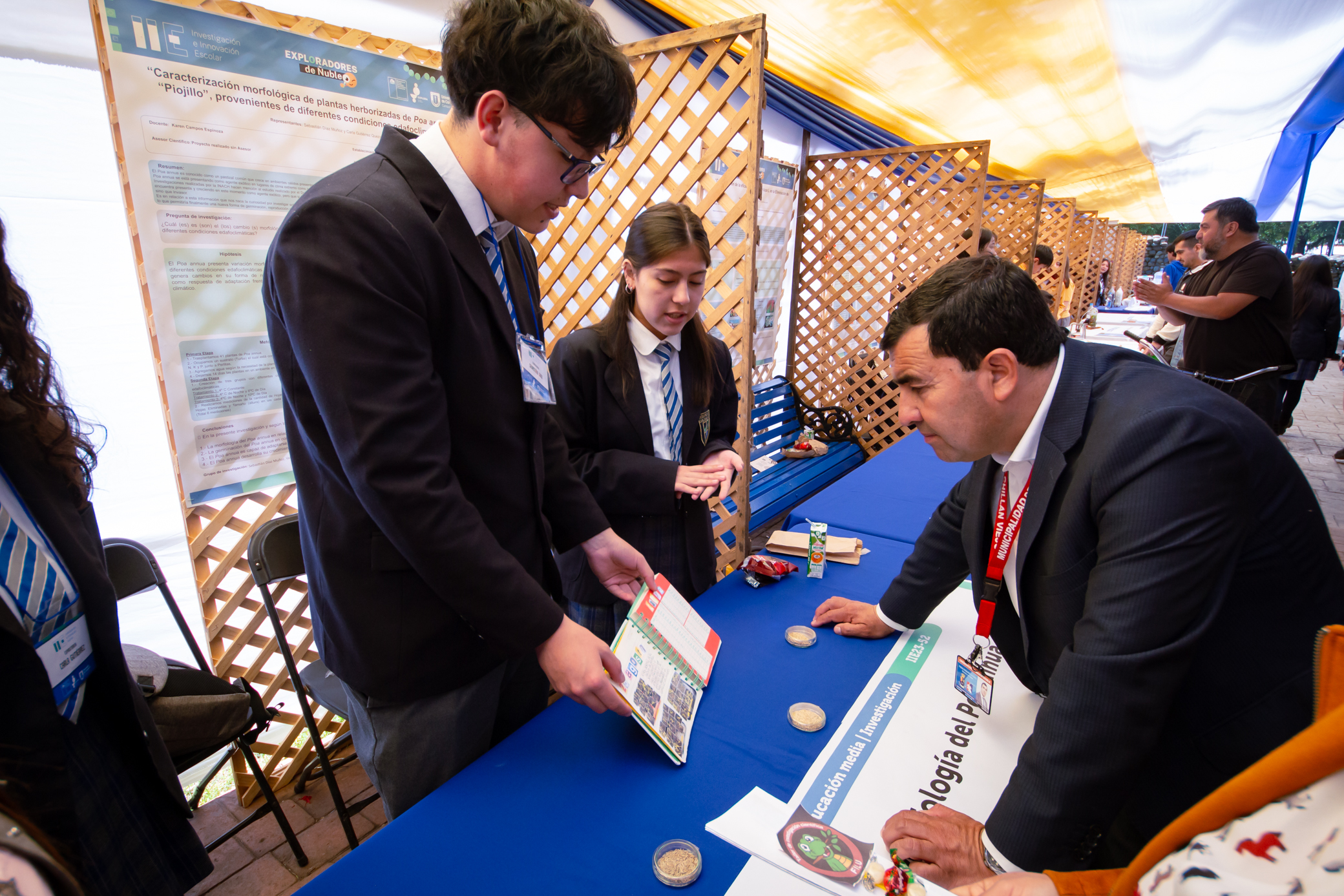 70 stands que albergaron investigaciones de temas tan variados que dan solución a problemáticas como la eficiencia energética, la contaminación, medioambiente, uso de plantas medicinales, percepciones sociales, y proyectos artísticos, fueron presentados en la mañana del 23 de noviembre en el Parque Monumental de Chillán Viejo, gracias a una estrecha colaboración con la Municipalidad de la histórica comuna.