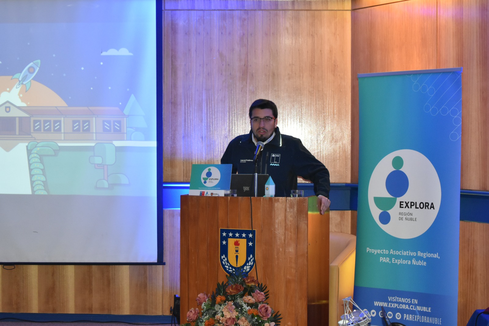 Un atractivo y lúdico encuentro organizado por el equipo de PAR Explora Ñuble, fue realizado en la tarde del miércoles 12 de julio, en el auditorio José Suárez Fanjul, principal espacio del campus Chillán de la Universidad de Concepción. Se destacó la presencia en esta ceremonia de 16 representantes de instituciones asociadas al proyecto, además de una gran cantidad de público, principalmente docentes de establecimientos, académicos y estudiantes universitarios.