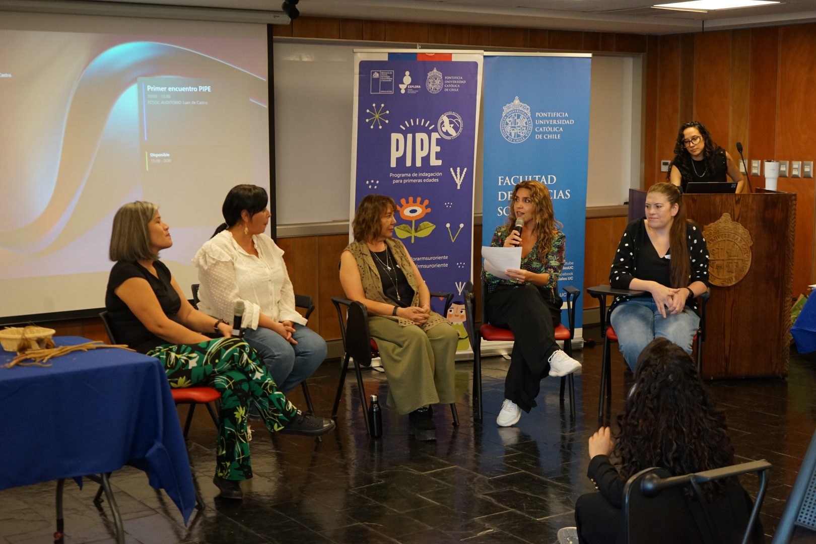 Un momento central de la jornada fue el conversatorio con participantes de PIPE 2025, quienes compartieron sus experiencias, aprendizajes y desafíos en la implementación del programa en sus respectivos establecimientos. En este espacio participaron Anette Araya, del Colegio Bicentenario Antártica Chilena (Vitacura); Mariana Maureira, de la Sala Cuna y Jardín Infantil Santa Rosa (Lo Barnechea); Pamela Rojas, del colegio Puelmapu (Peñalolén); y Paola Millán, de la Escuela de Lenguaje Todos los Santos (Puente Alto). A través de sus relatos, las agentes educativas destacaron el valor de PIPE como una oportunidad de fortalecer prácticas pedagógicas desde la indagación, promover el protagonismo de las niñas y niños, y enriquecer los proyectos educativos de sus comunidades.