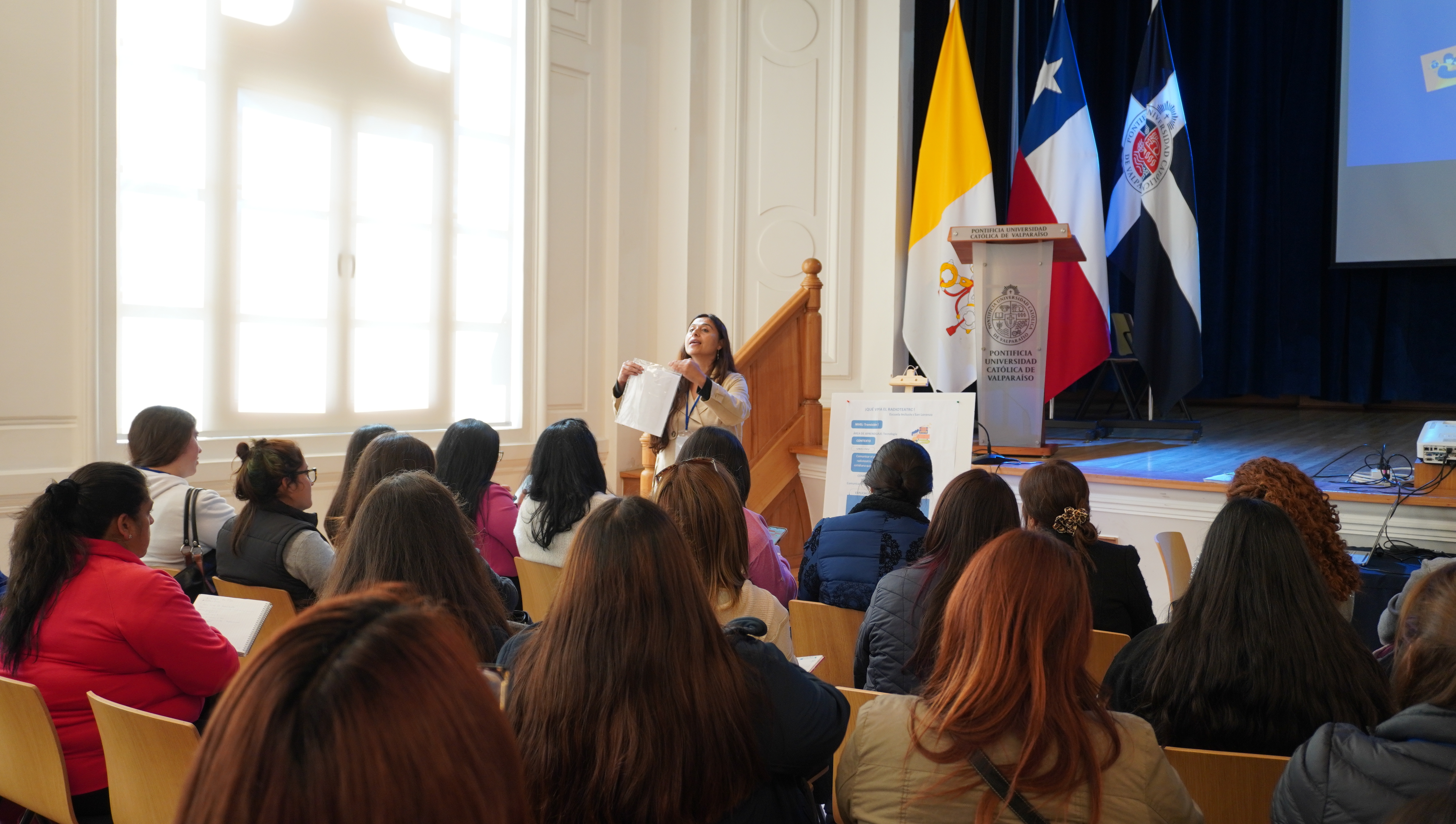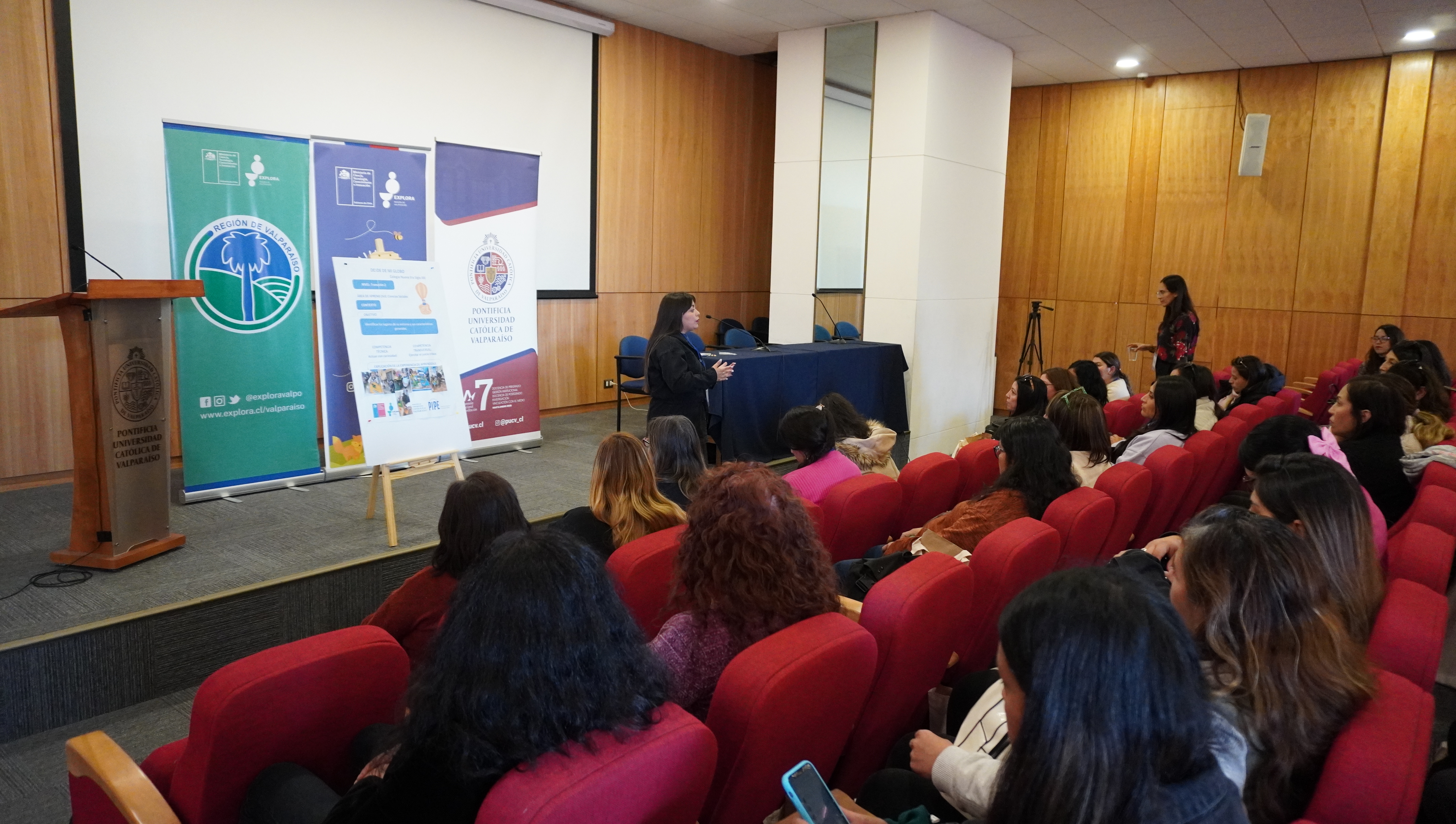La actividad desarrollada en dependencias de la Casa Central de la PUCV, tuvo como objetivo que las participantes, organizadas en duplas pedagógicas, comprendieran el rol en el desarrollo del programa según el modelo de competencias y bajo los principios del Programa Explora.
