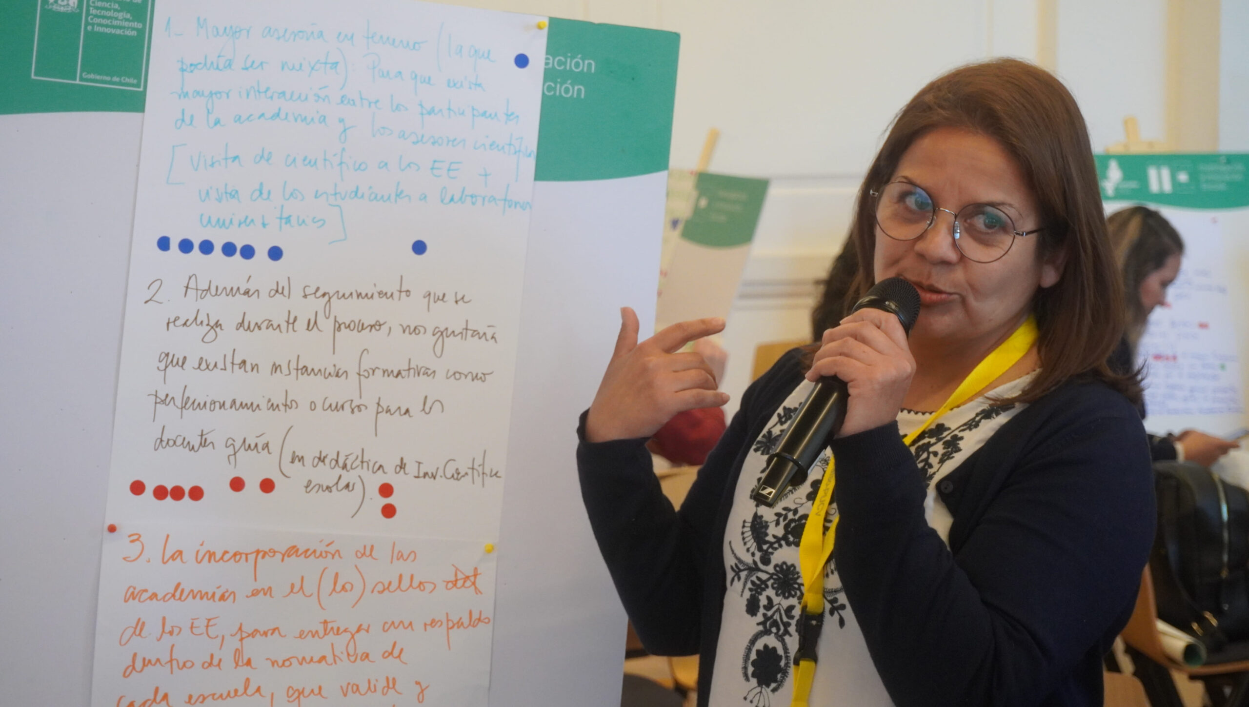 Al ser consultada sobre su experiencia compartiendo con pares comentó “fue bastante emocionante saber que no estoy sola, y que hay otros profesores y profesoras de diferentes lugares que piensan lo mismo que yo, reconociendo problemáticas con los tiempos o que las Academias Explora deberían estar siempre en nuestro PME”.