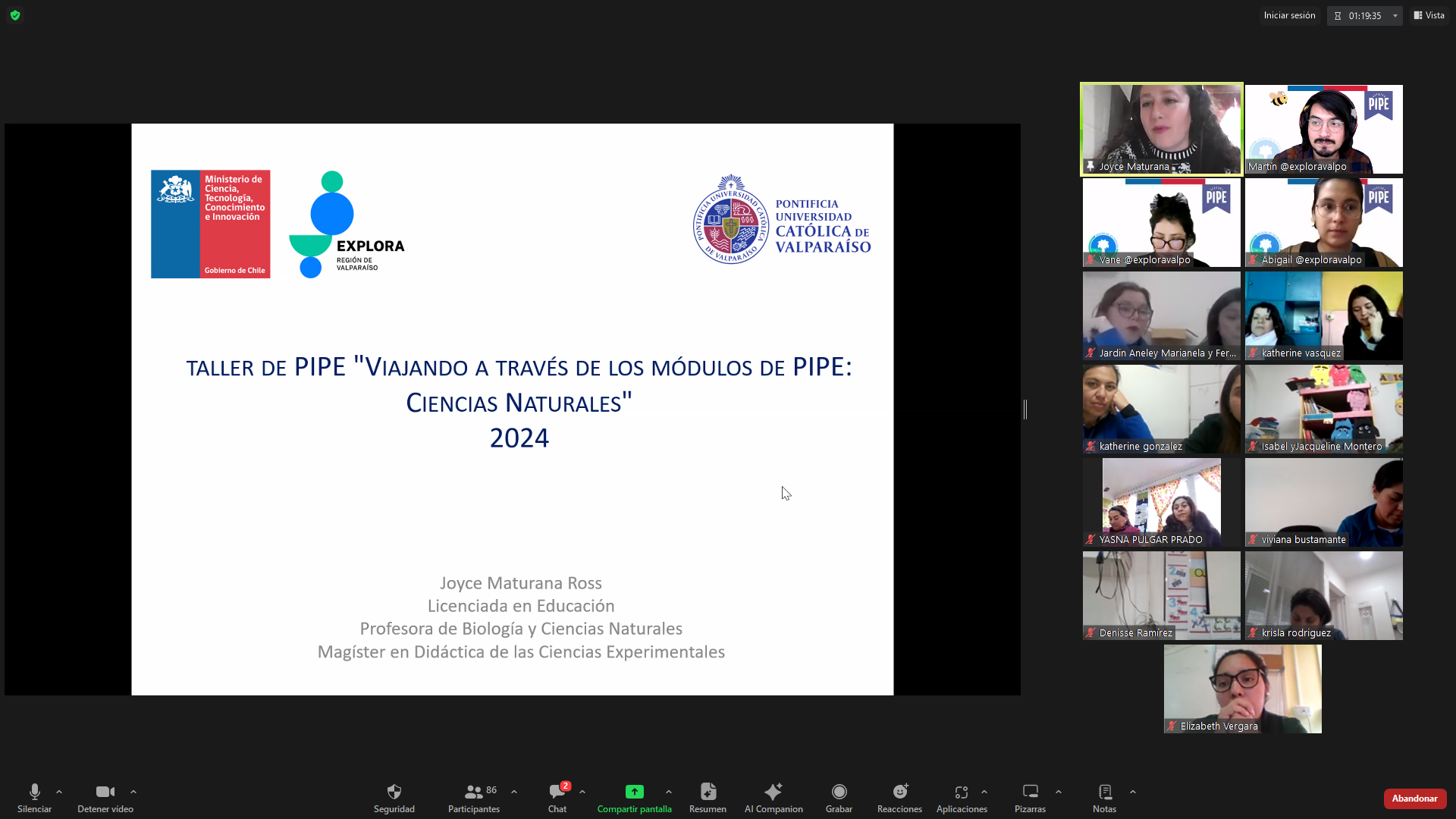 “Ha sido una experiencia grata, es muy significativo ver este interés por las Educadoras de párvulos y asistentes en aprender sabiendo que los tiempos en el contexto escolar son pocos” comentó Joyce Maturana, académica de Educación Parvularia PUCV y docente del Magíster en didáctica de las Ciencias Experimentales durante la tercera capacitación, dedicada a profundizar el módulo de Ciencias Naturales. Joyce cerró con un mensaje a las duplas “Les dejaría el mensaje a todas las participantes de PIPE que se mantengan conectadas con los intereses de niños y niñas y que traten de abordar las curiosidades que tienen. Que tengan mucha paciencia y perseverancia, siendo mediadoras quienes a través de la investigación y la exploración, puedan acompañar a niños y niñas a encontrar respuestas.”