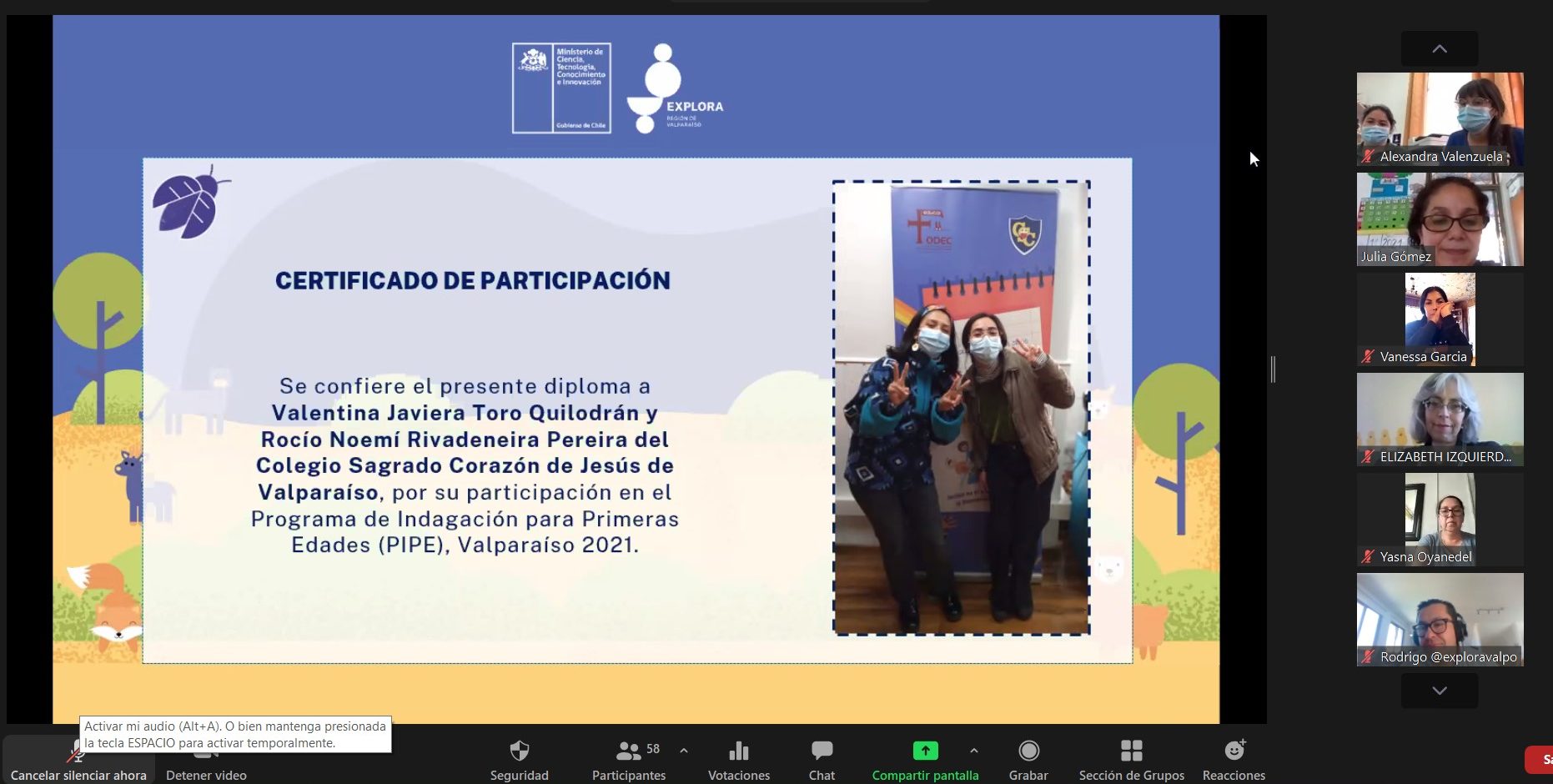 entre julio y noviembre, a través de dos etapas. En un primer momento, las duplas fueron parte de una serie de sesiones sincrónicas virtuales, en las que pudieron revisar y aprender contenidos teóricos y prácticos; para luego pasar a la etapa de implementación, en la que con la ayuda del equipo de Vinculación Escolar de Explora Valparaíso, aplicaron diversos módulos de PIPE en el aula junto a sus estudiantes, adaptando las actividades a sus entornos y realidades.