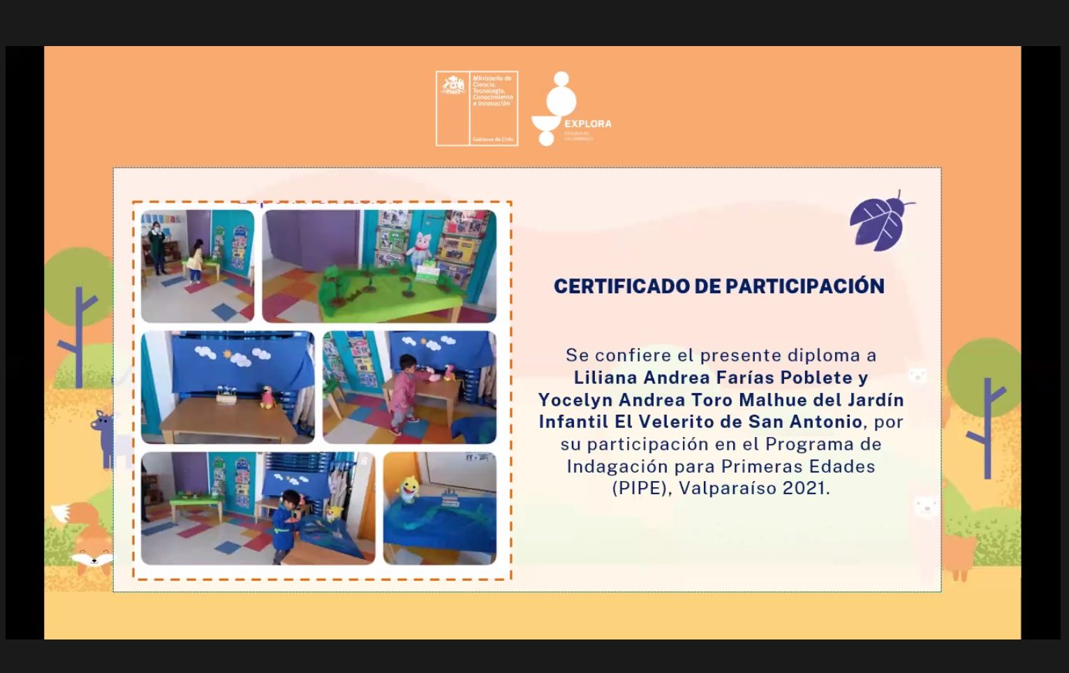 Liliana Farías, Educadora de Párvulos del Jardín Infantil El Velerito de San Antonio cuenta que junto a su dupla Yocelyn Toro, Técnica en Educación Parvularia “quisimos ser parte de PIPE ya que es un tema súper relevante e interesante para nuestro quehacer educativo y sentíamos que nos faltaban algunas herramientas para implementar las ciencias en el aula”. Asimismo, destaca que el trabajo con sus escolares ha sido muy entretenido e innovador. Si bien adaptamos las actividades-propuestas en PIPE- resultó como esperábamos y hasta nos sorprendimos. Los niños y niñas quedaron encantados/as”, reflexiona.