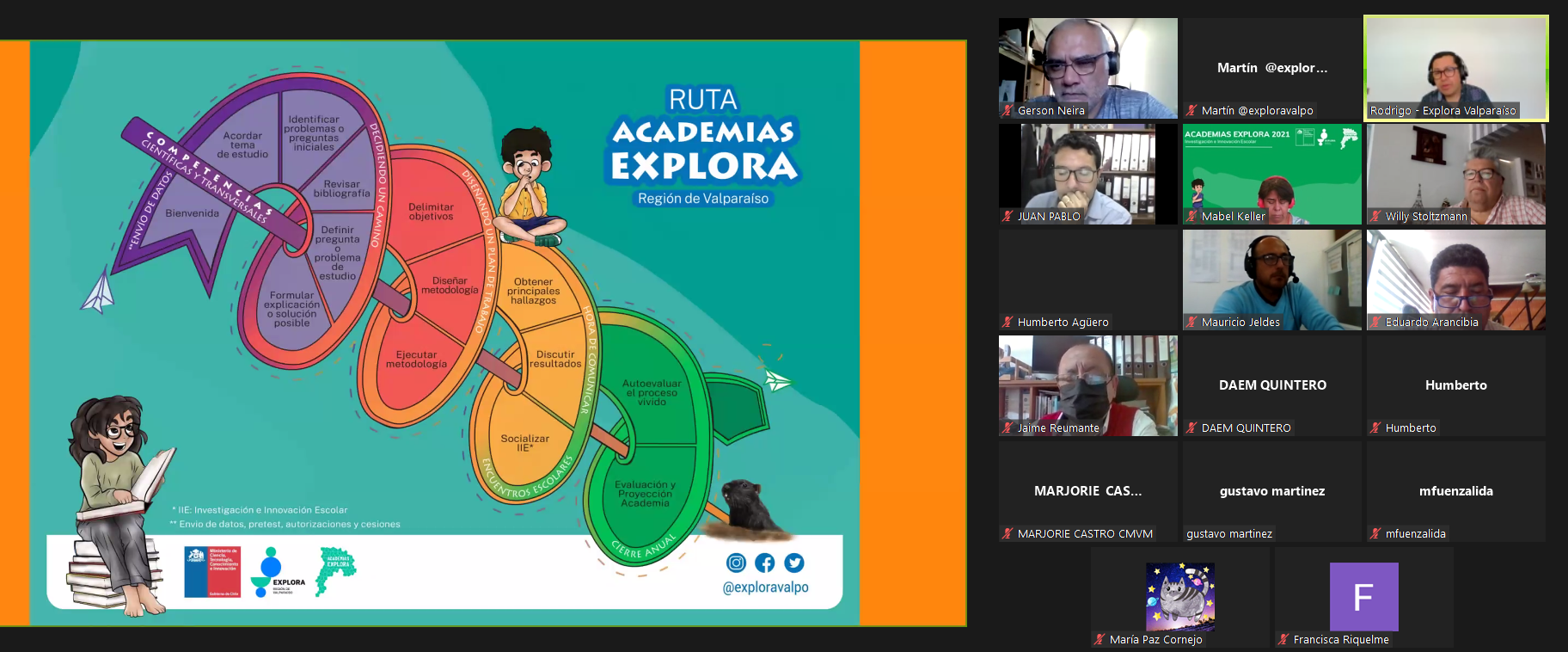 La primera semana de diciembre recién pasada, se llevó a cabo la última reunión virtual de la Red Territorial de Ciencia y Tecnología, colectividad constituida el 2008 desde Explora Valparaíso y conformada por las Corporaciones y Departamentos de Educación Municipal (DAEM) de las 38 comunas de la Región de Valparaíso, MINEDUC, el Servicio Local de Educación Valparaíso-Juan Fernández y en su representación regional, la Junta Nacional de Jardines Infantiles (JUNJI).
